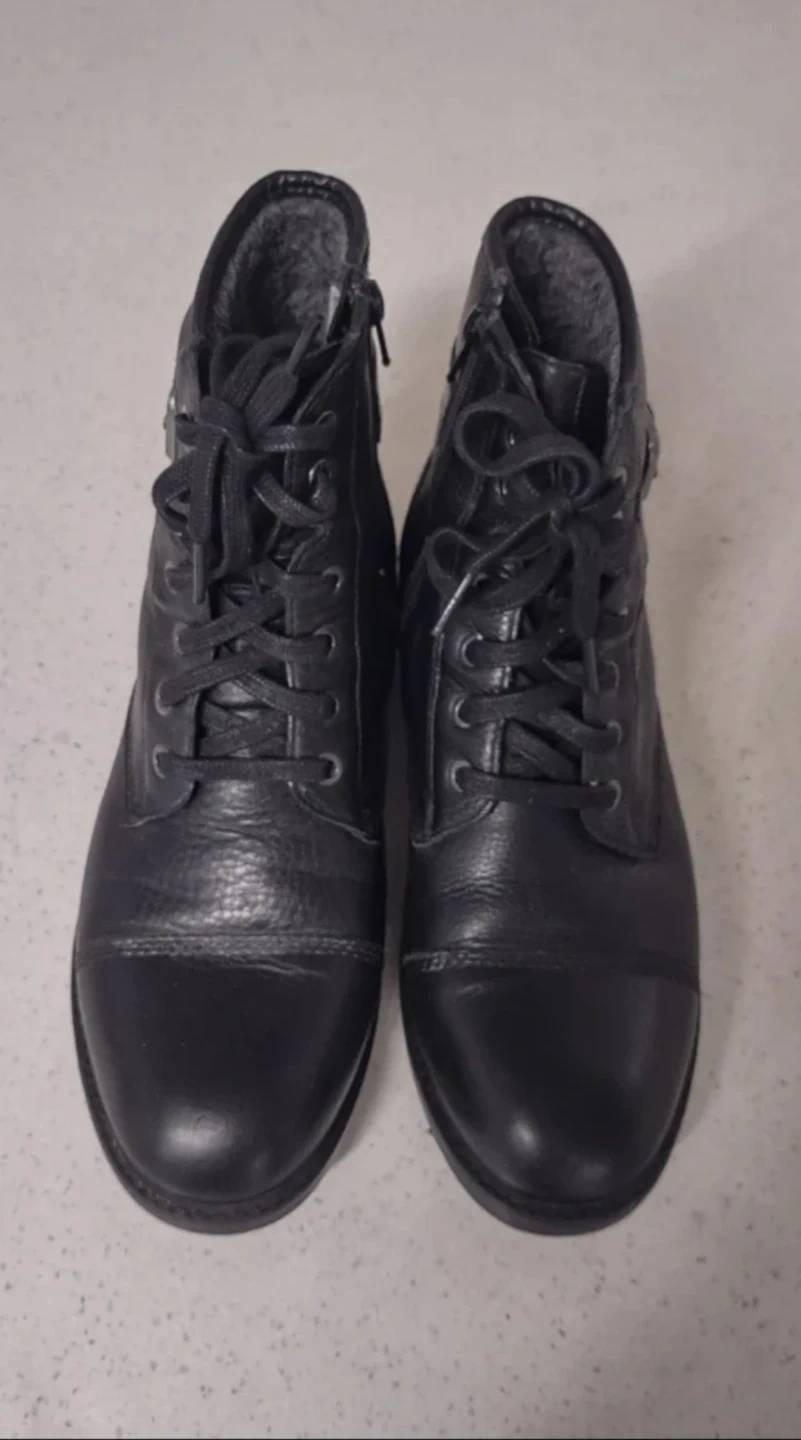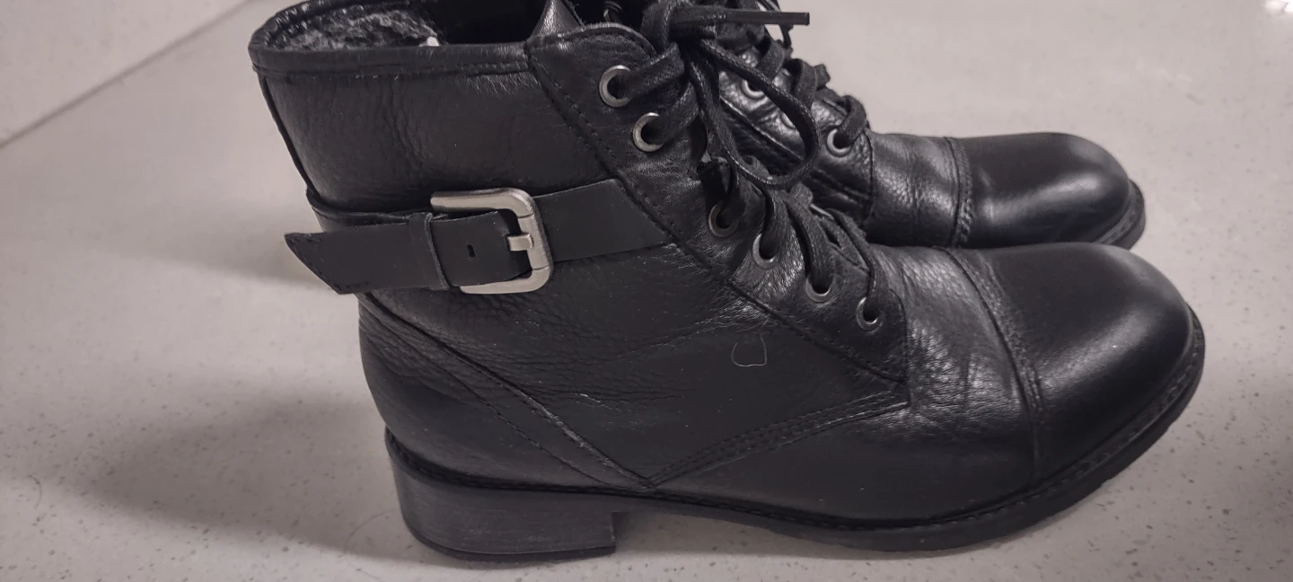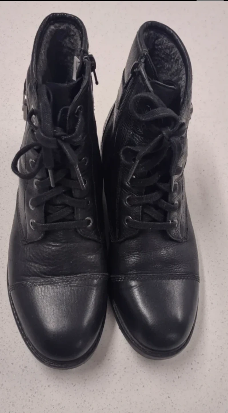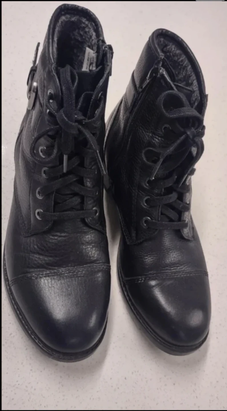 These are worker-style boots made from high-quality cowhide leather. The inside of the boots is lined with fleece, making them warm, and the leather is very soft, providing a comfortable fit. There is a zipper on the side, making it easy to put on and take off.