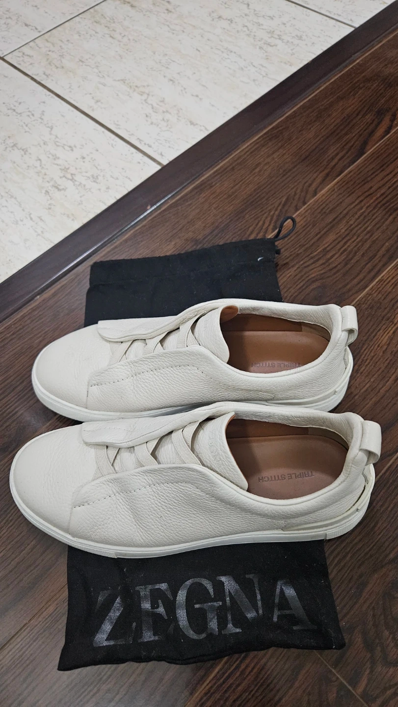 Selling a pair of Zegna Triple Stitch leather sneakers. They show some signs of wear on the soles, but the uppers are in good condition. Comes with the original dust bag!