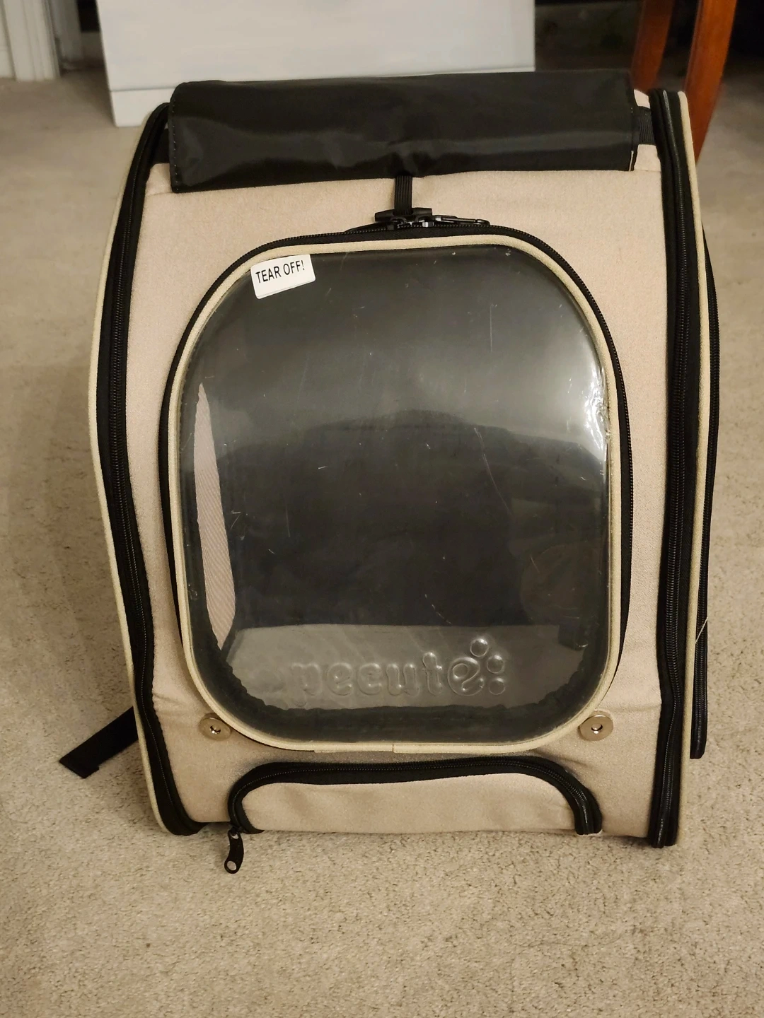 Pecute Bubble : Large Space Pet Backpack for Cats and Small Dogs Carrier – Adjustable Roll-Up Skylight, Ventilated Mesh, Anti-Escape Zipper, Waterproof Carrier for Travel, Hiking, Car Rides, and Outdoor Adventures with your furry frien. The breathablubble window provide ventilation and a view for your pet. It's in New condition!