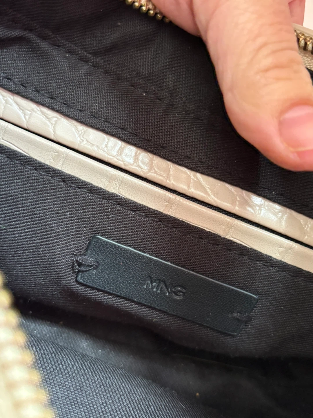 MNG Beige Croc Shoulder Bag