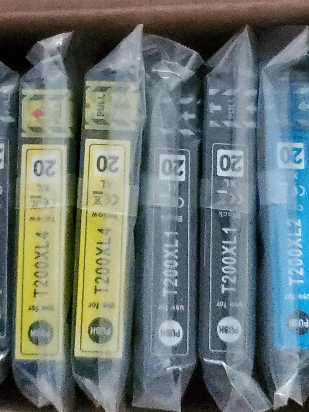 Selling a set of Epson T200XL ink cartridges. They're brand new and still in their original packaging. Includes magenta, 2 Yellow, 3 Black and 2 Cyan.