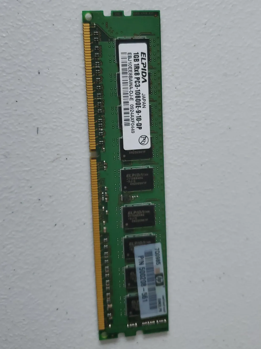 Selling an Elpida 1GB 1Rx8 PC3-10600E-9-10-DP RAM module. It's in good working condition and ready to be used in your computer