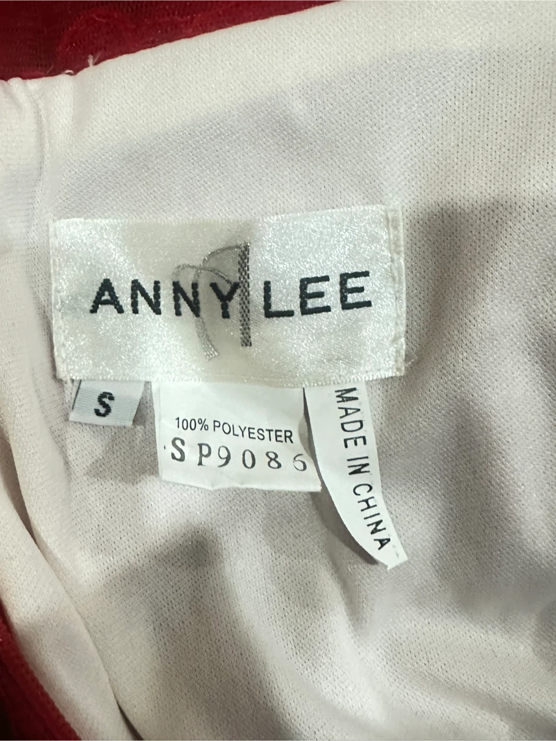 Selling a beautiful red lace formal dress from Anny Lee. It's a size small and made of 100% polyester. Perfect for a special occasion!