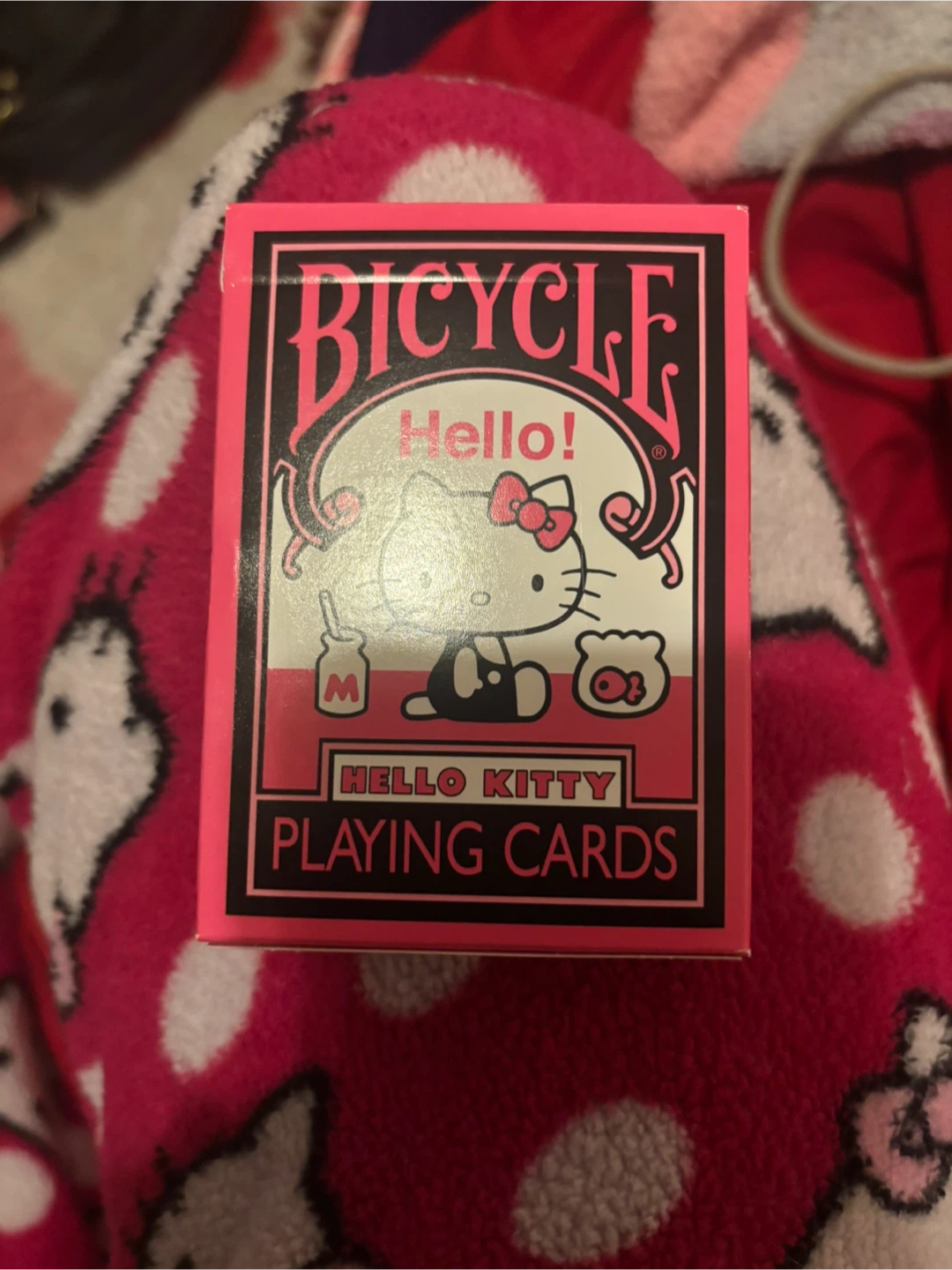 Selling a deck of Hello Kitty playing cards by Bicycle! They have a cute Hello Kitty design on the cards and the box. The box says "Air-Cushion Finish" and "Made in USA". Great for collectors or anyone who loves Hello Kitty!