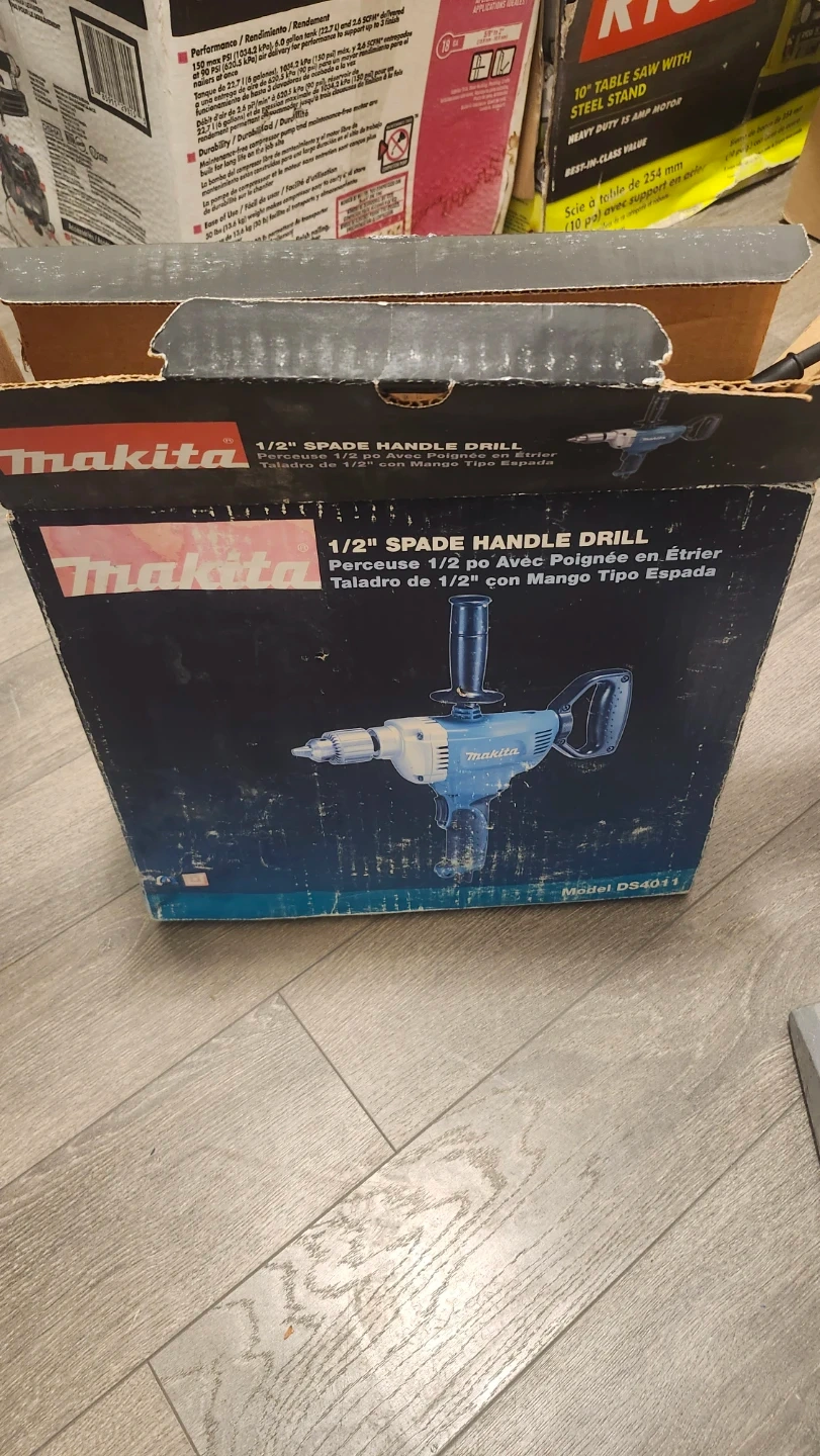 Selling a Makita 1/2" Spade Handle Drill, model DS4011. It comes with its original box. Basically new.