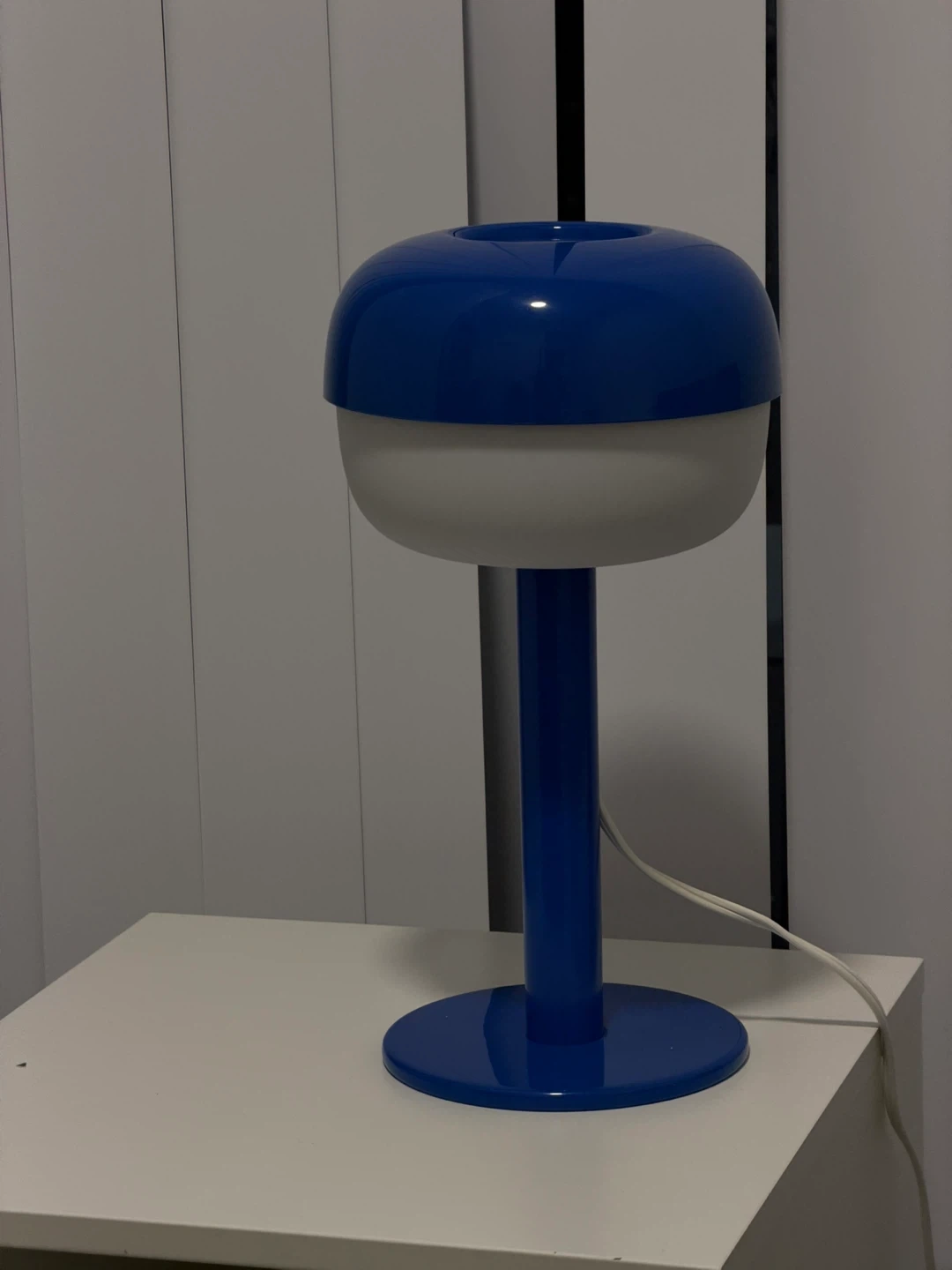 Here's a stylish blue mushroom table lamp! It features a unique design with a rounded top and a sleek, modern look. The lamp provides a soft, ambient light, perfect for any room.