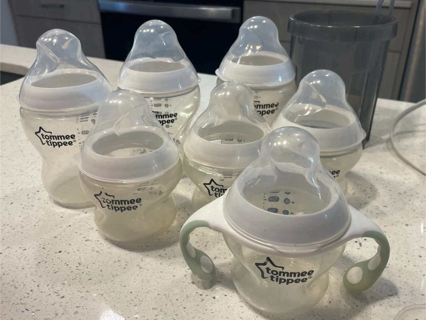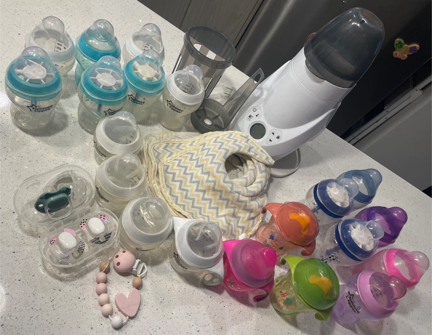 Selling a bundle of Tommee Tippee baby bottles and accessories! Includes various types of bottles, handles, sippy cups, pacifiers, pacifier clip, Bibs and a bottle warmer/steamer. No nipples because I’m not comfortable using second hand ones therefore I won’t sell them. London drugs & Walmart are decent for prices though or Amazon too. The blue anti-colic bottles are new as well, was an impulse buy, we like pandas, and the green anti-colic’s are lightly used, the star valves are in excellent condition. The Red and green sippy cups are pretty well brand new, my girl did not like them however, we did use the handles for a while. If you want close up pics of anything just let me know.