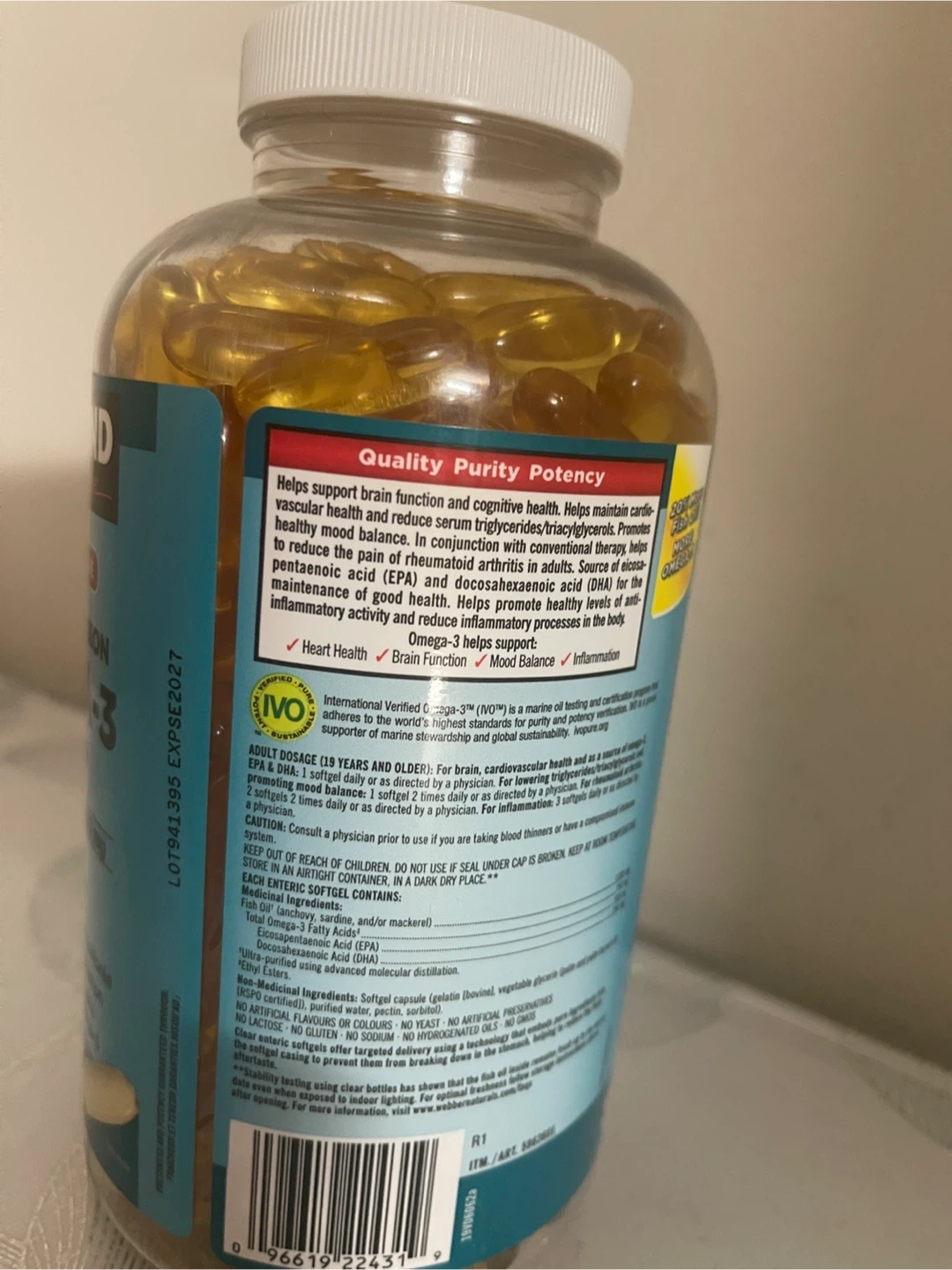 Each softgel contains EPA 500 mg and DHA 250 mg. It supports cardiovascular and brain function, promotes healthy mood balance, and helps reduce inflammation. Expiry Date is 2027 September.
