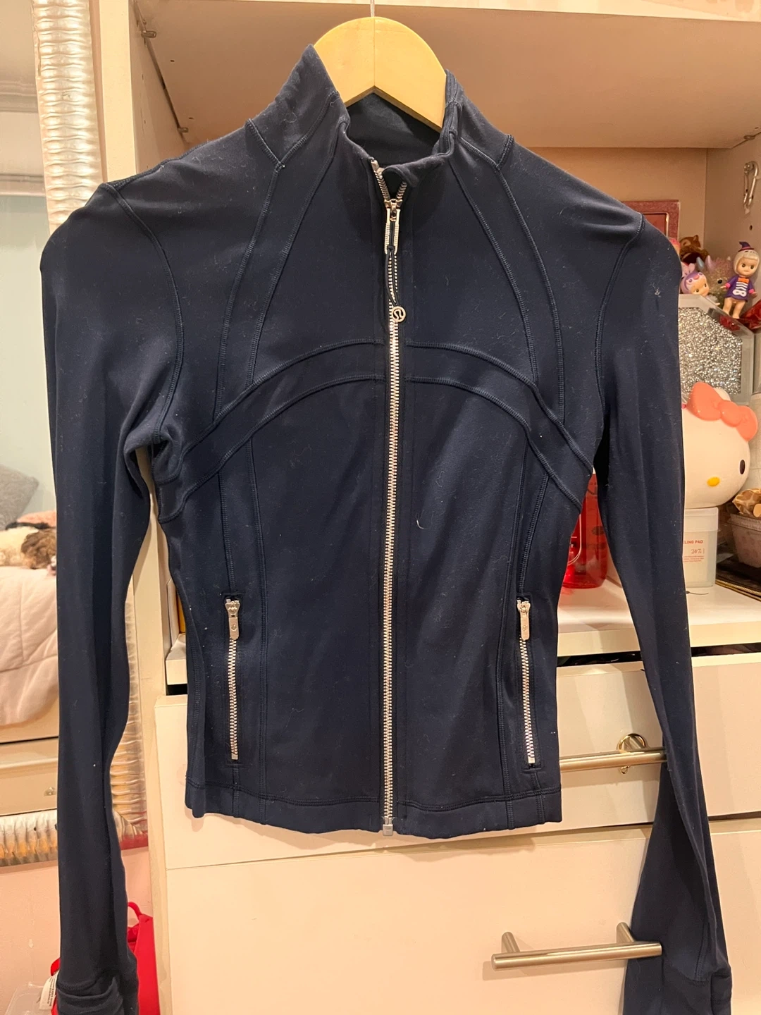 Selling a Lululemon Define Jacket in navy, size 2. It's in great condition and ready for a new owner! The jacket is perfect for workouts or everyday wear. It's lightweight and comfortable, making it a great addition to your wardrobe