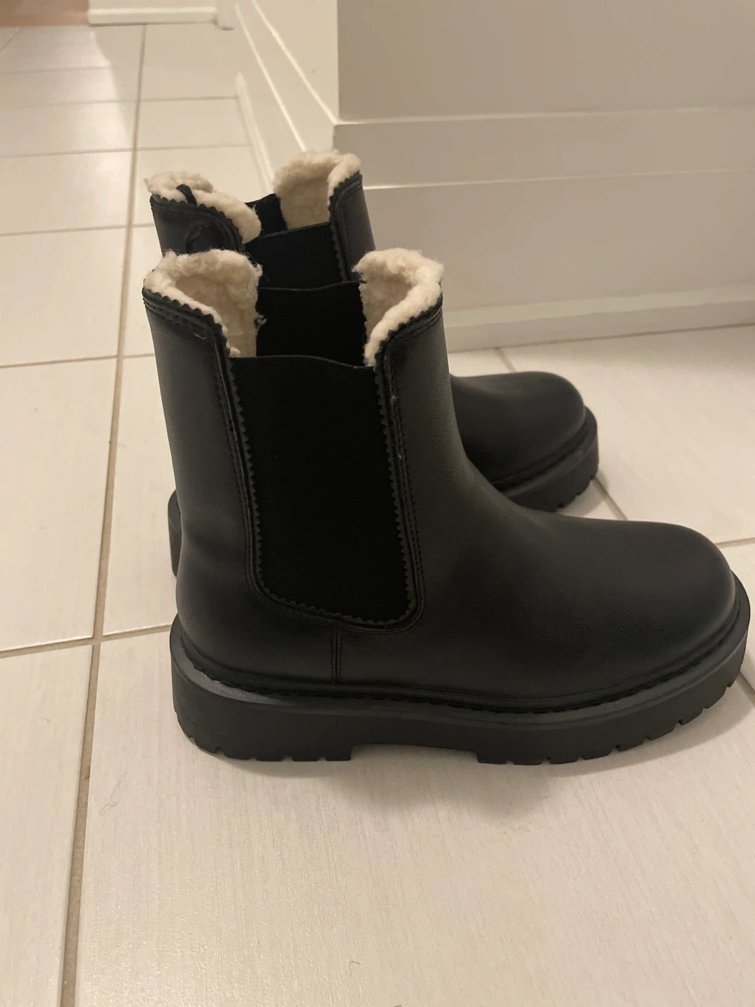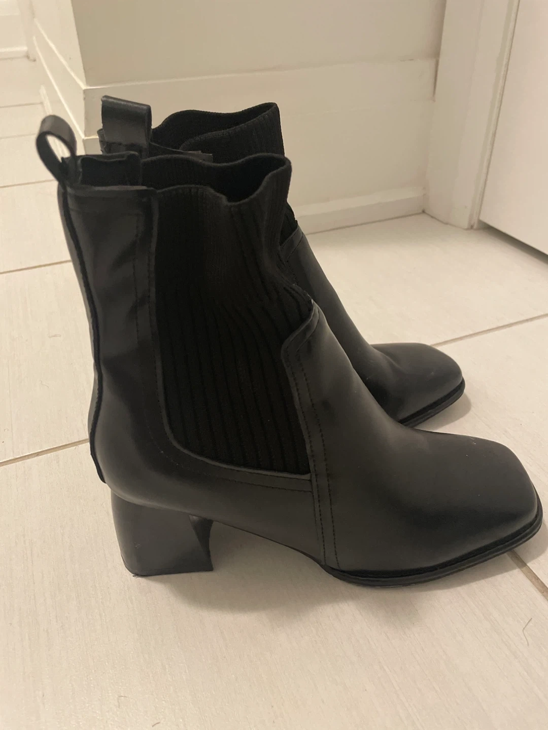 Chelsea Boots, Size 8, Black and Beige