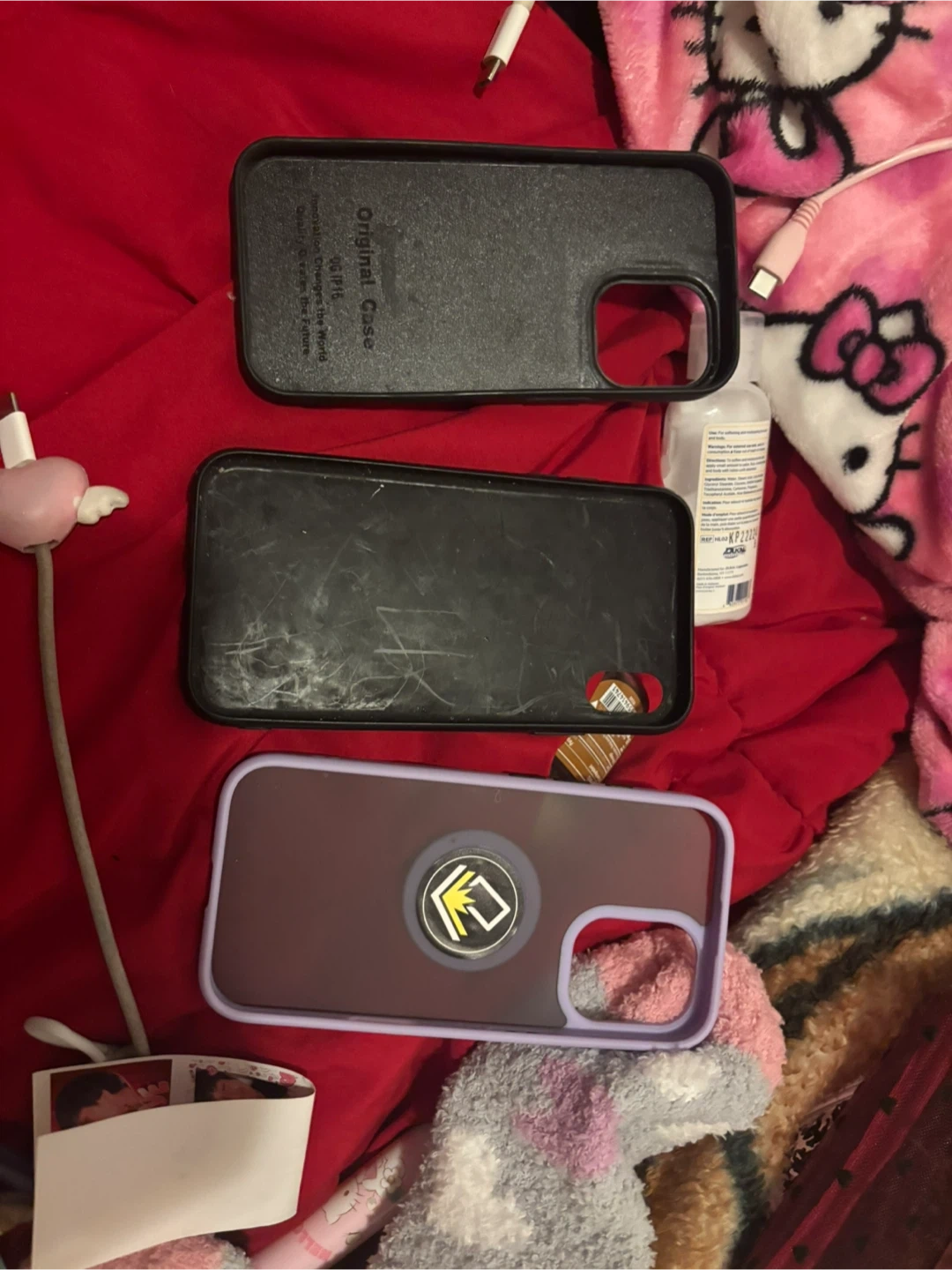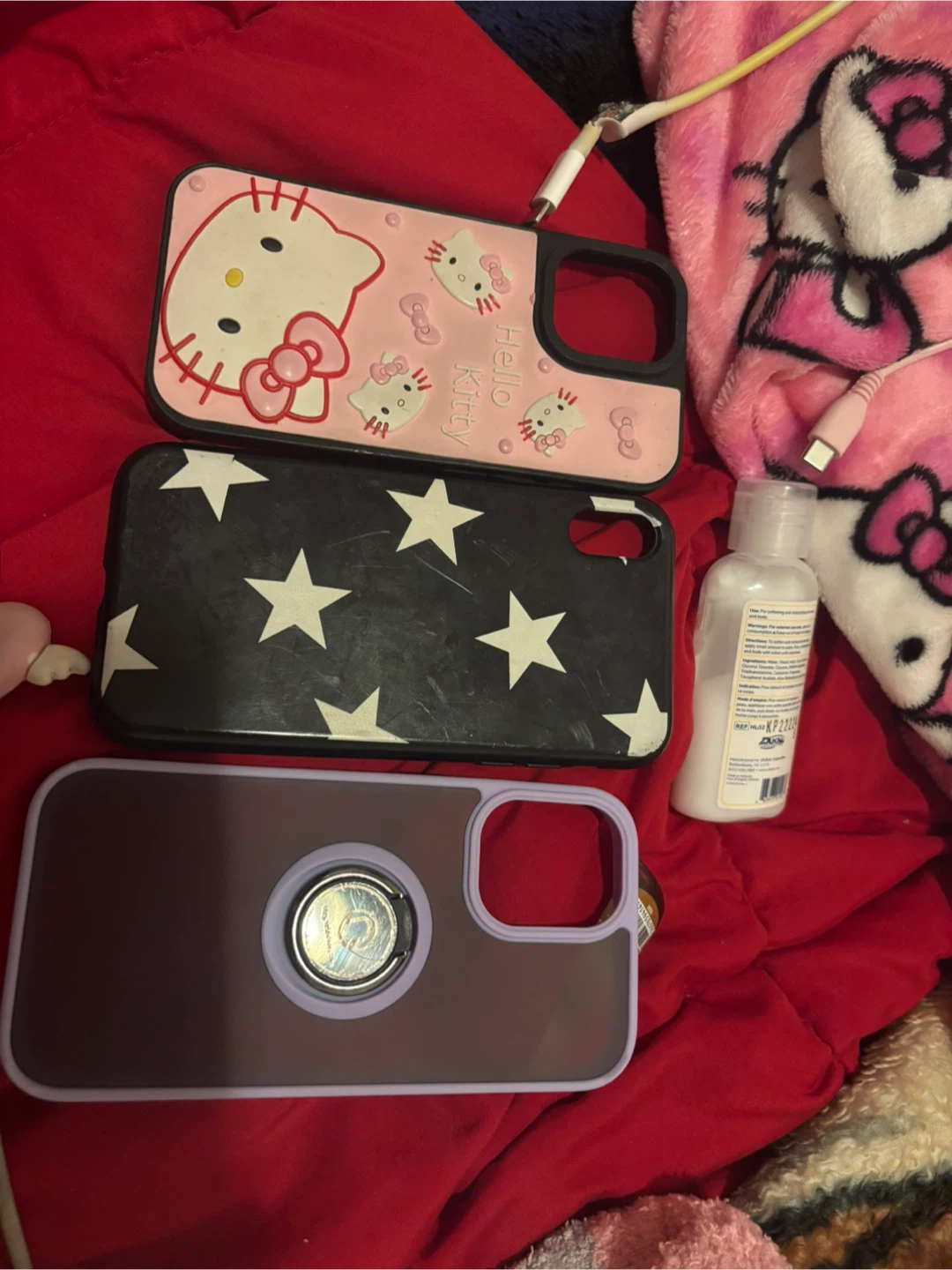 Selling a variety of iPhone cases! There's a cute Hello Kitty case, one with a star pattern, and another with a ring stand. They're all in used condition, but still have plenty of life left. Perfect for switching up your phone's style!