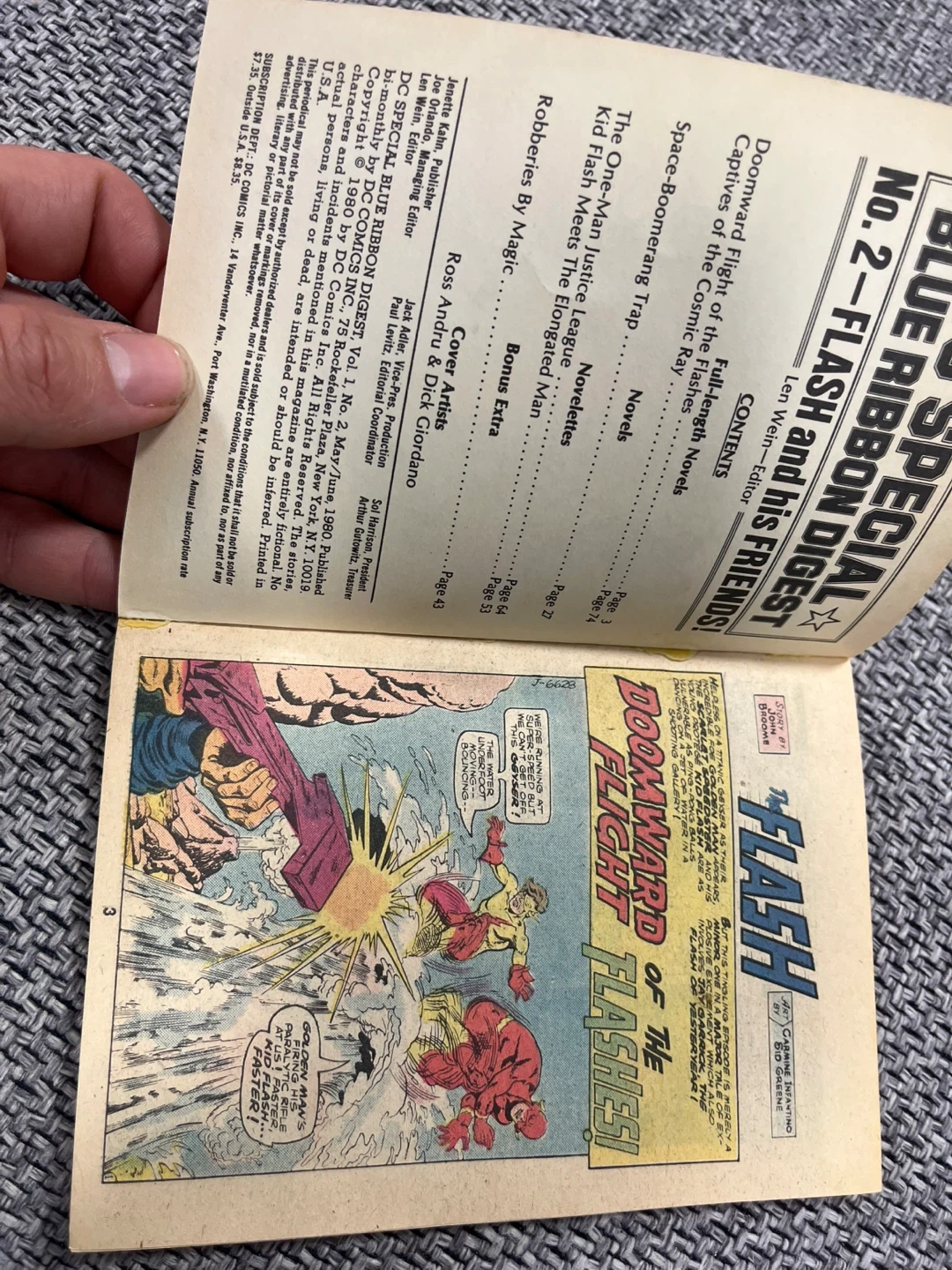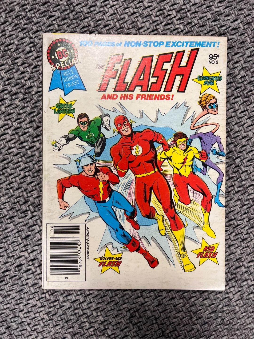 Selling a copy of The Flash and His Friends! comic book. It's a DC Special Blue Ribbon Digest, No. 2. Featuring classic team-ups and adventures with Green Lantern, Elongated Man, and more! Perfect for any comic book collector or Flash fan