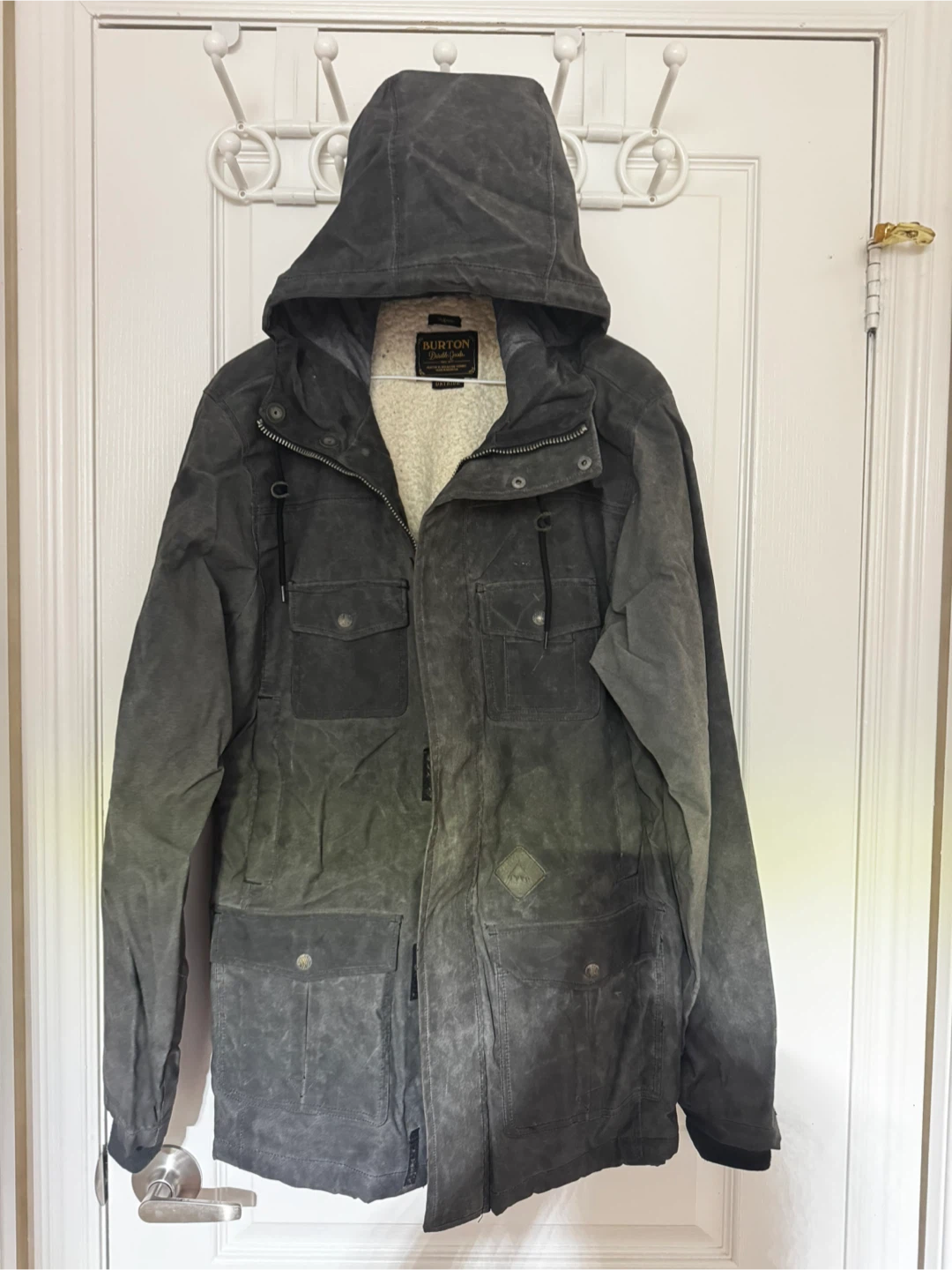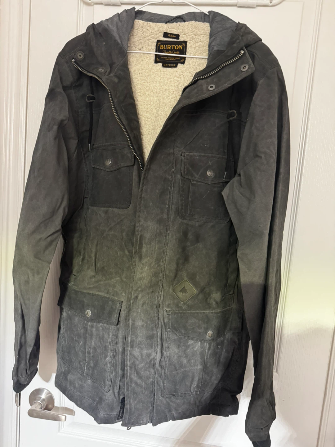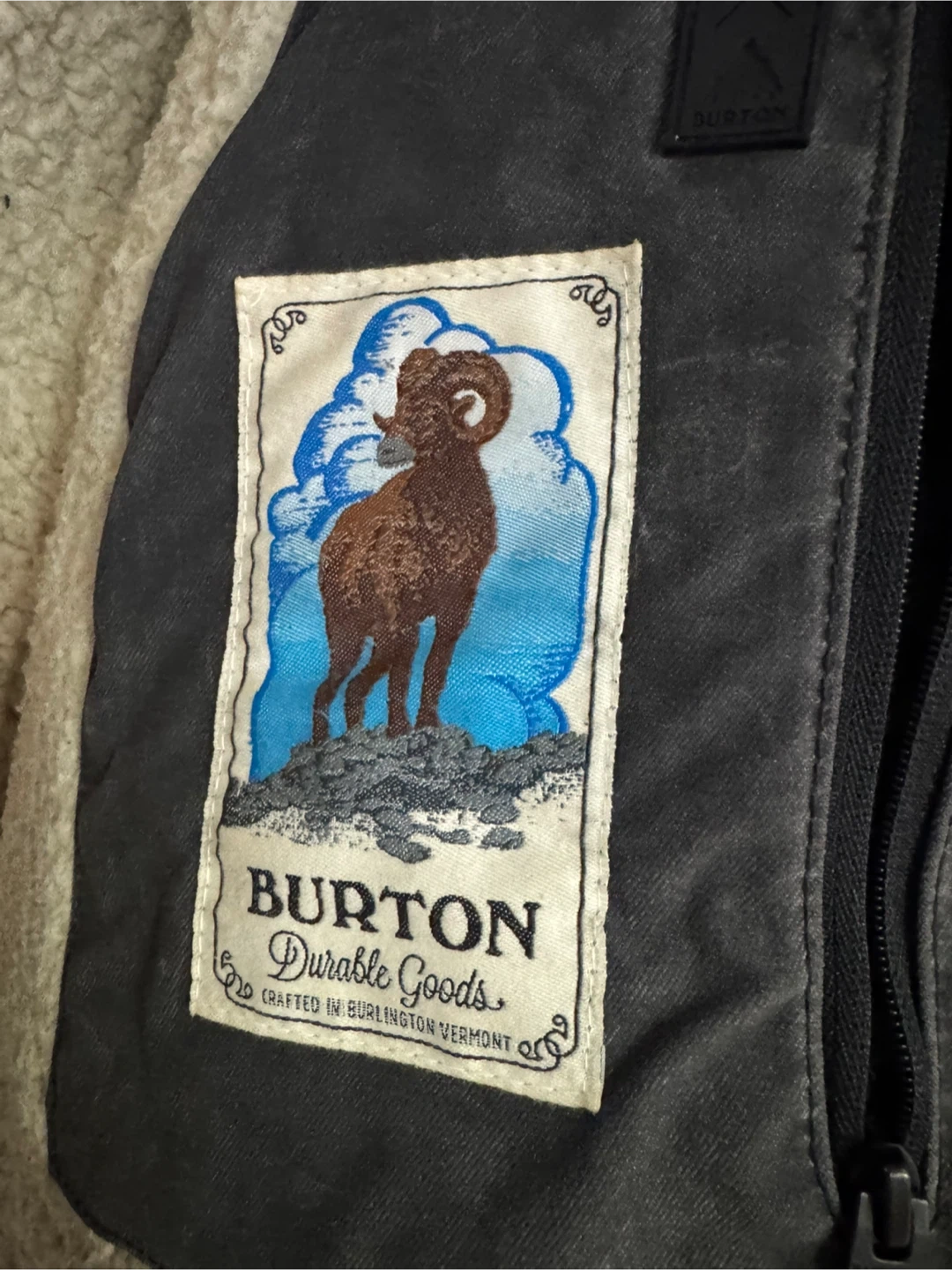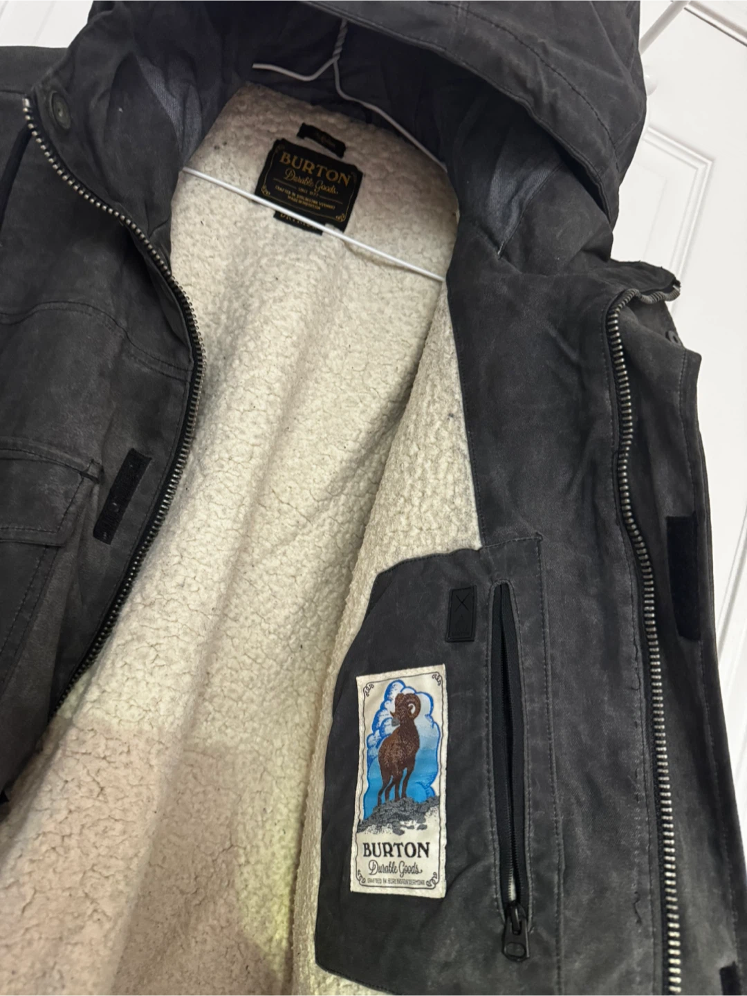 Cozy Burton Durable Goods jacket with a sherpa lining! It's in great condition and ready for the colder weather. Perfect for staying warm and stylish this season!