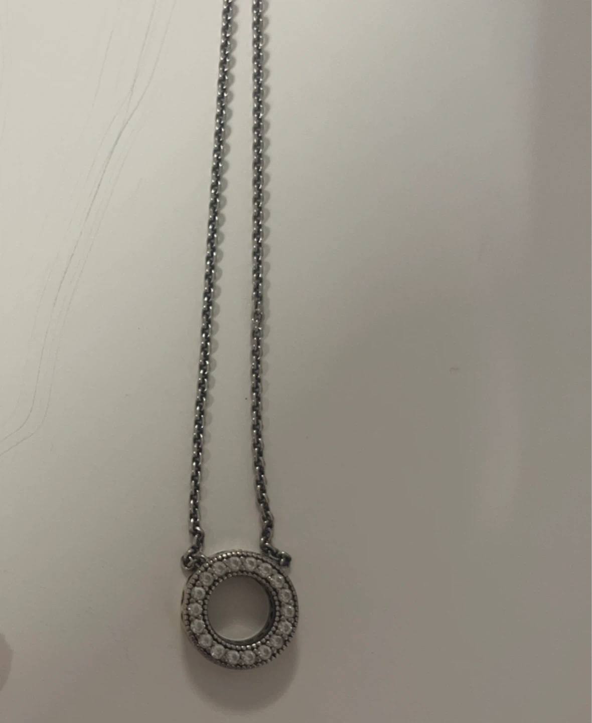 Selling a Pandora Pavé Circle Collier Necklace in sterling silver. It's in great condition and originally retailed for $120. This necklace is a beautiful and timeless piece! NO BOX! Price reflects that.