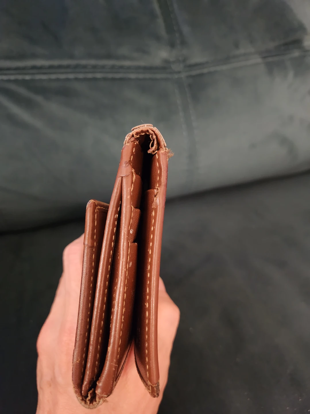 Selling a Burberry wallet. It shows signs of wear and tear, especially on the edges and closure. See photos for details