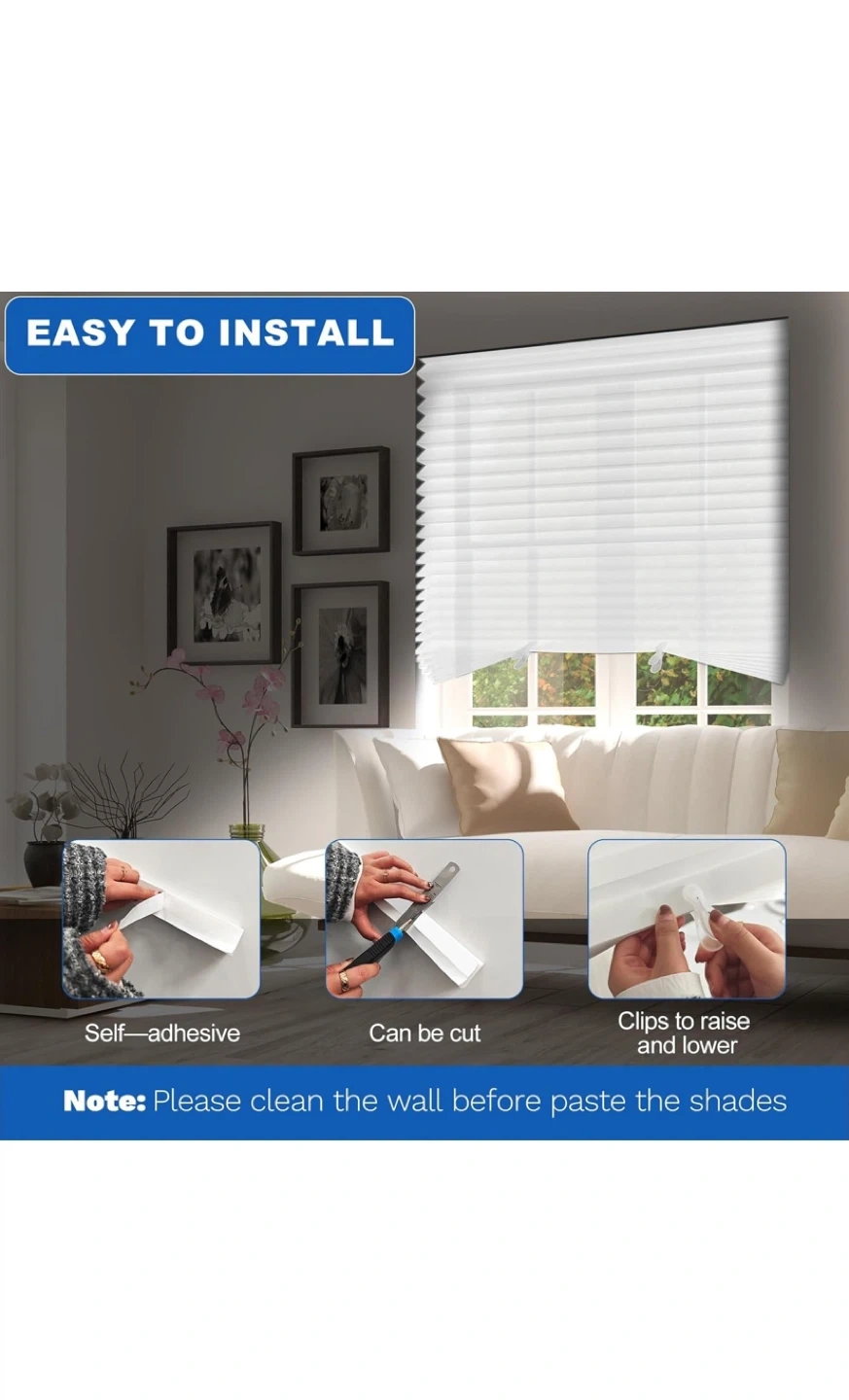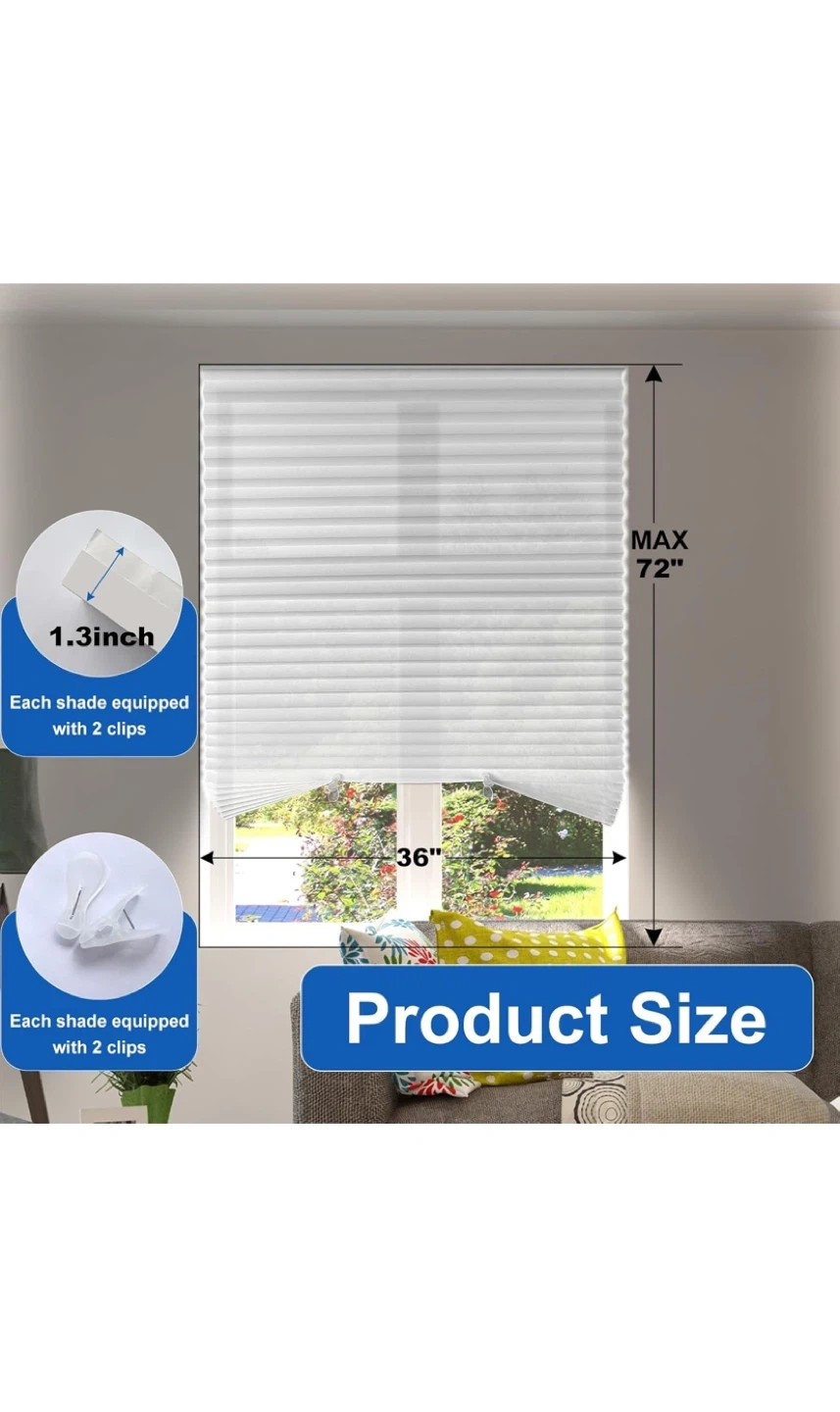 6 pack Selling a white cordless pleated shade, sized at 36" x 72".
