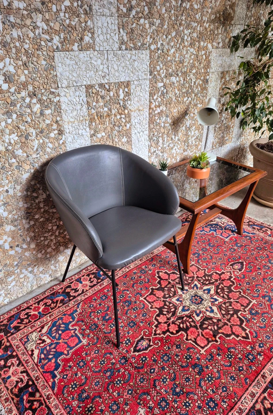 Set Of 10 Grey Leather Accent Bucket Chairs (Price Per Chair)