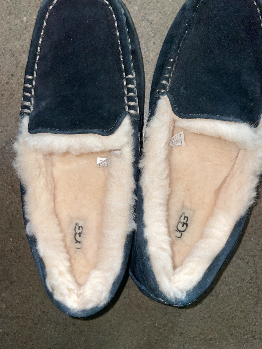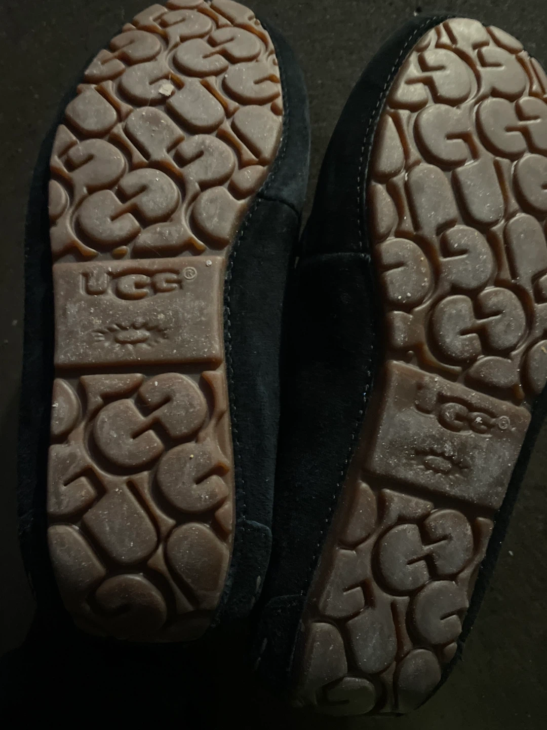 Selling a pair of UGG slippers in black suede. They are in great condition and super comfy for wearing around the house!
