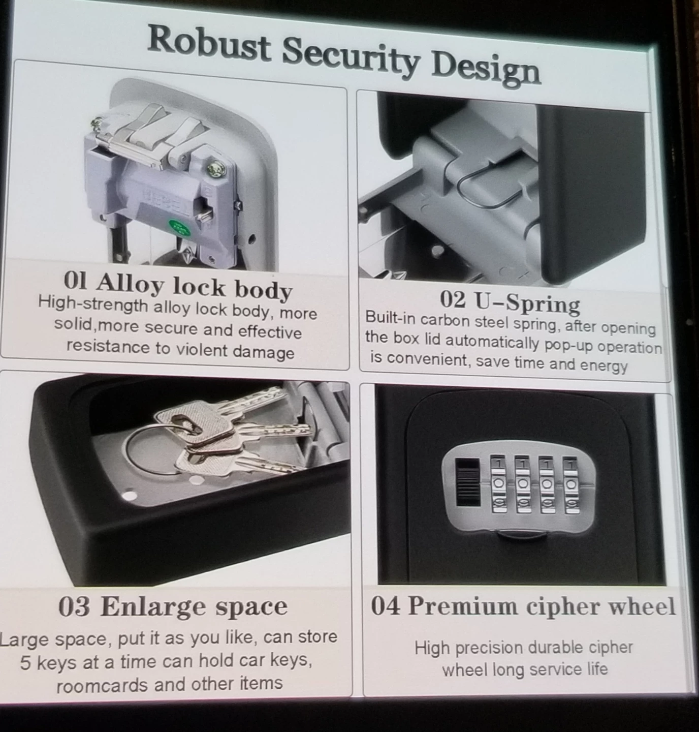 Keep your keys safe and secure with this wall-mounted key lock box! It's designed with a robust security system, featuring an alloy lock body and a premium cipher wheel for long service life. The U-spring ensures the box lid pops open automatically, saving you time and energy. It's spacious enough to hold up to 5 keys, car keys, or room cards!