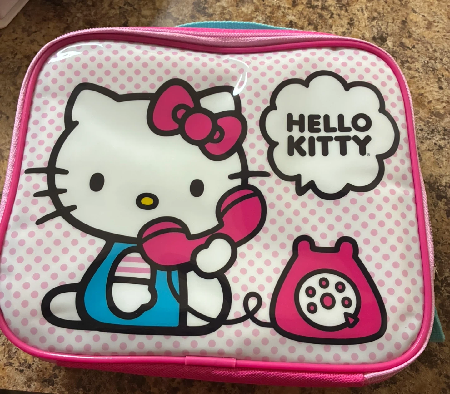 Selling a cute Hello Kitty lunch bag! It's pink with a Hello Kitty design on the front. Perfect for kids or Hello Kitty fans.