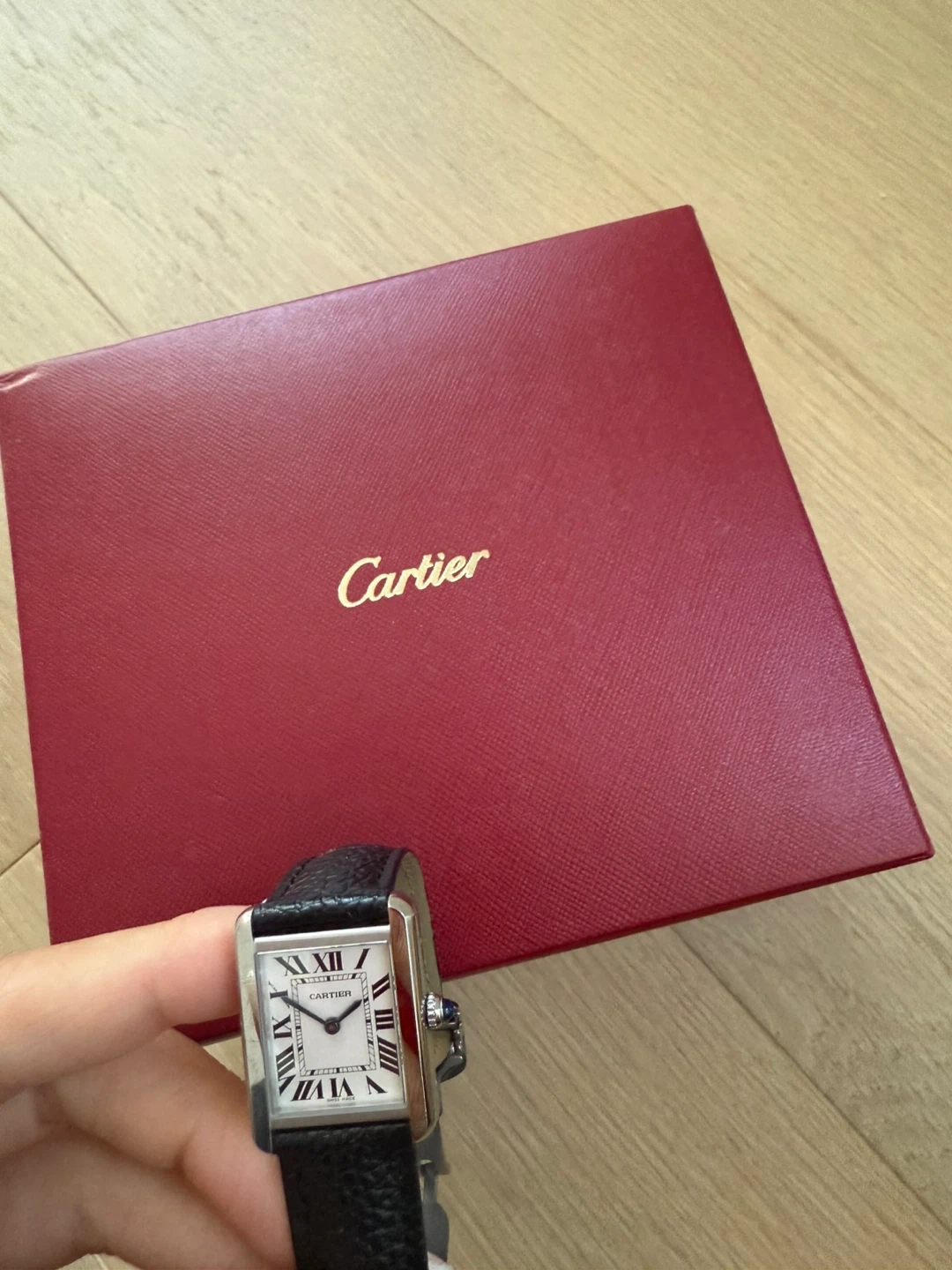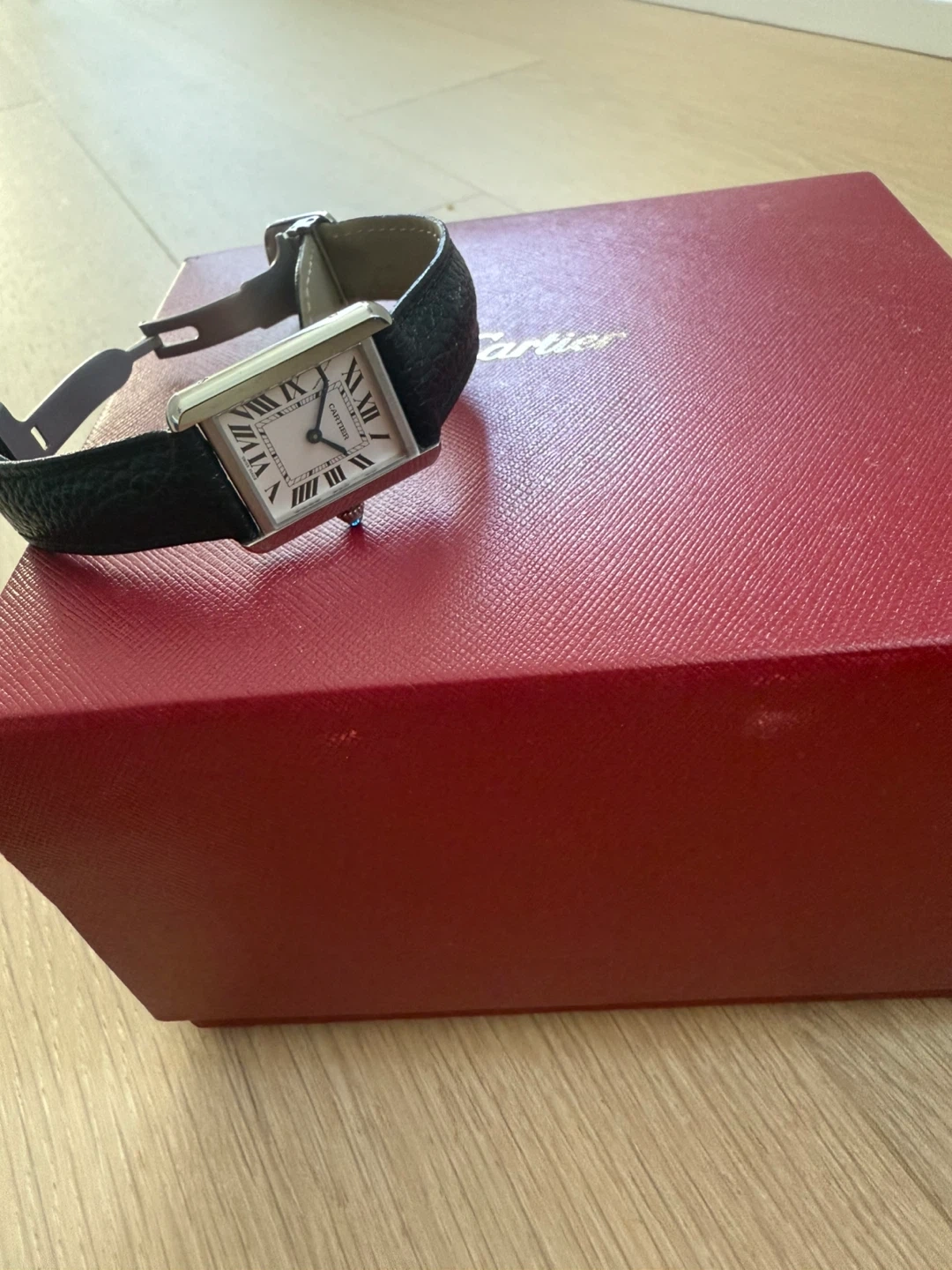 Selling a Cartier Tank watch, comes with the original box! It's in great condition and ready for a new owner