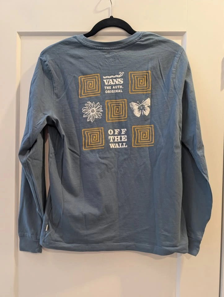 Vans Womens Long Sleeve Shirt- Blue, Gold, White- Size Small