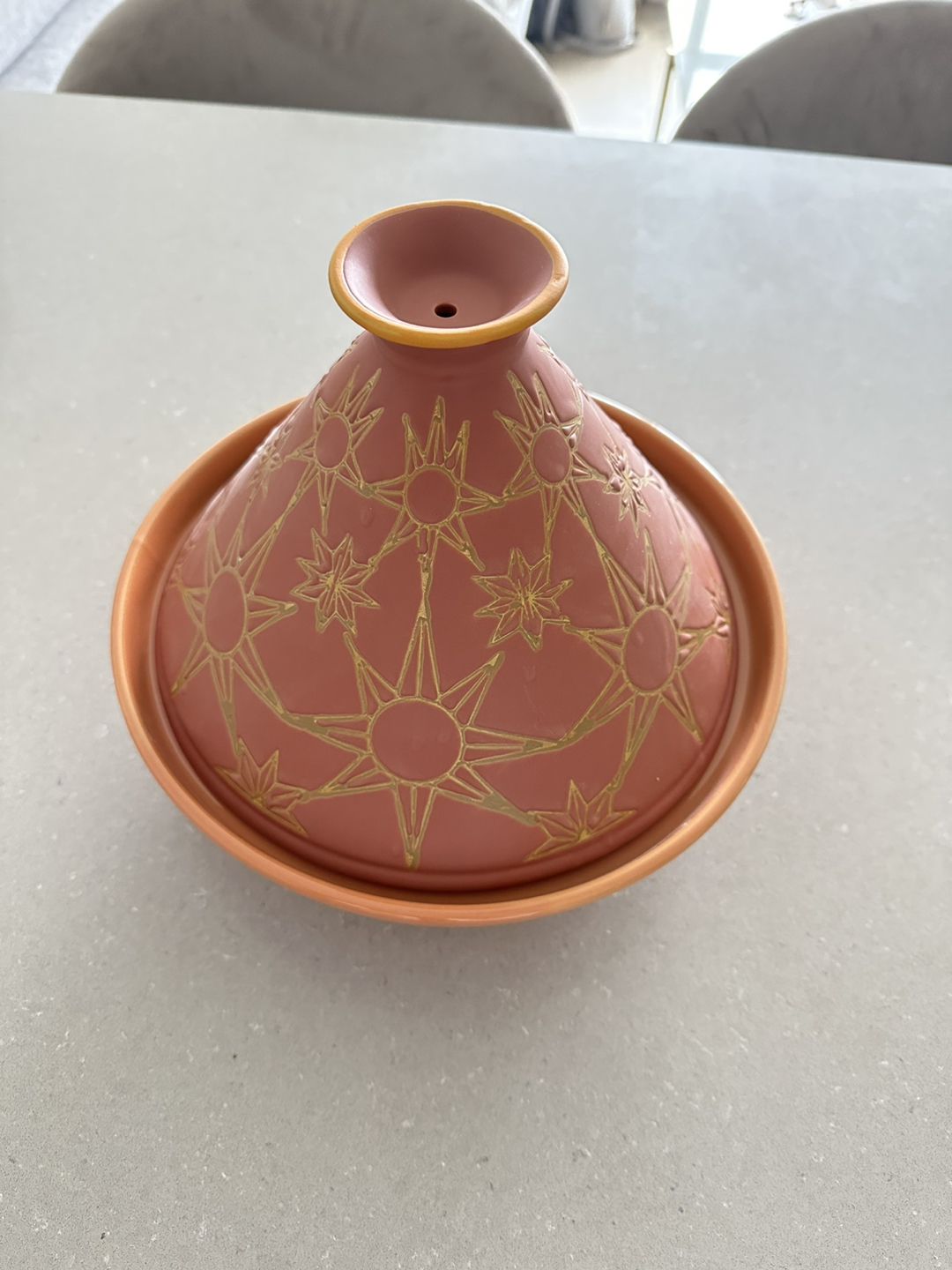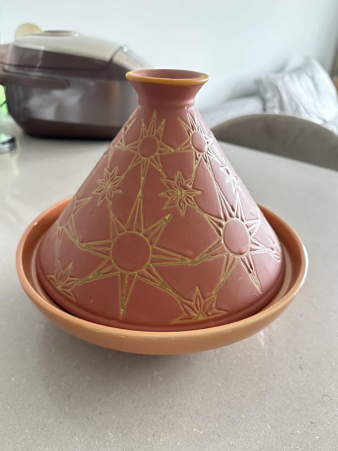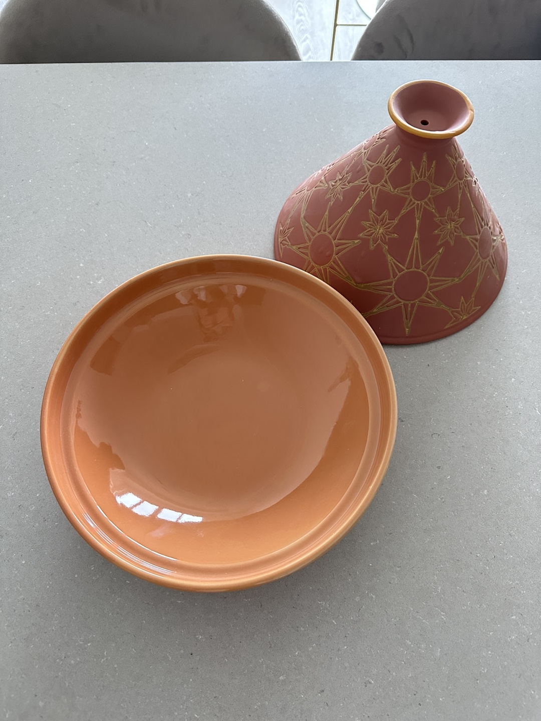 706Ceramic tagine with a fun design that’s dishwasher, microwave, and oven safe. There is a hole at the top of the lid to let out steam. Large enough to cook 2-3 meals! Never ended up using it and in perfect condition! - Dimensions: 10.04” Diameter x 8.07” H - Lid dimensions: 9.17” Diameter x 5.91” H - Base dimensions: 10.04” Diameter x 2.64” H ❗️Needs to be gone by early July! Whatever isn’t picked up by then will be donated. Feel free to browse my other listings if you’re interested! If you purchase multiple items I can provide a discount. :)