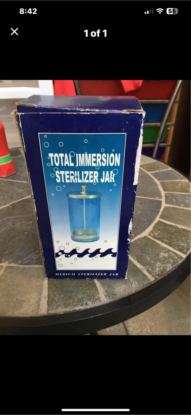 Selling a Total Immersion Sterilizer Jar, medium size! It comes in its original box. Perfect for sterilizing!