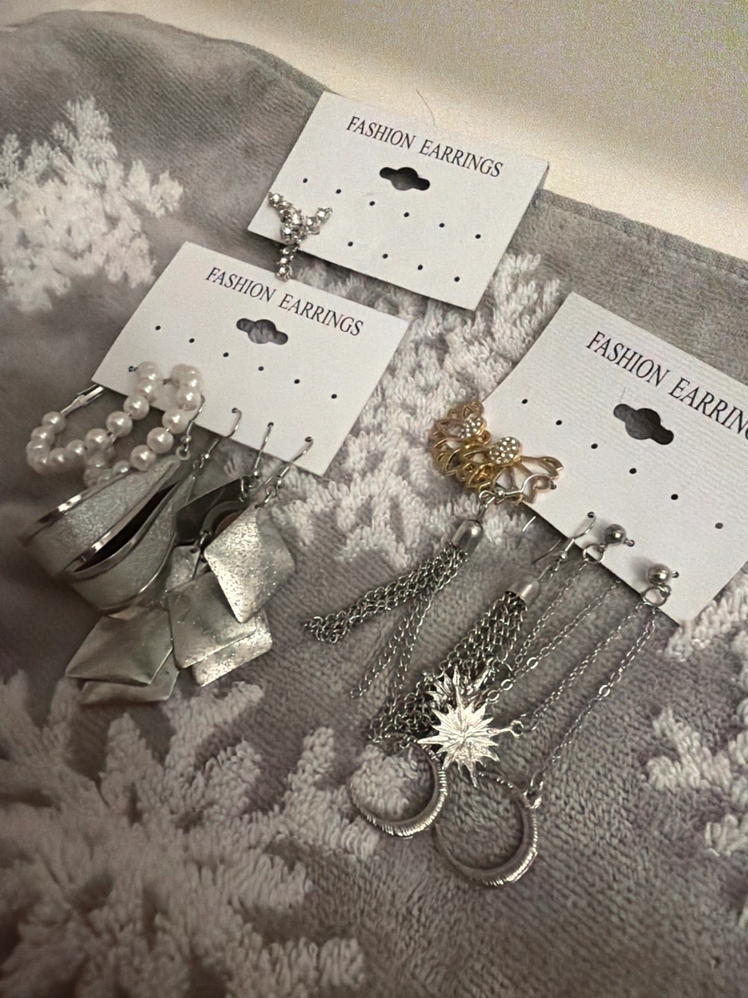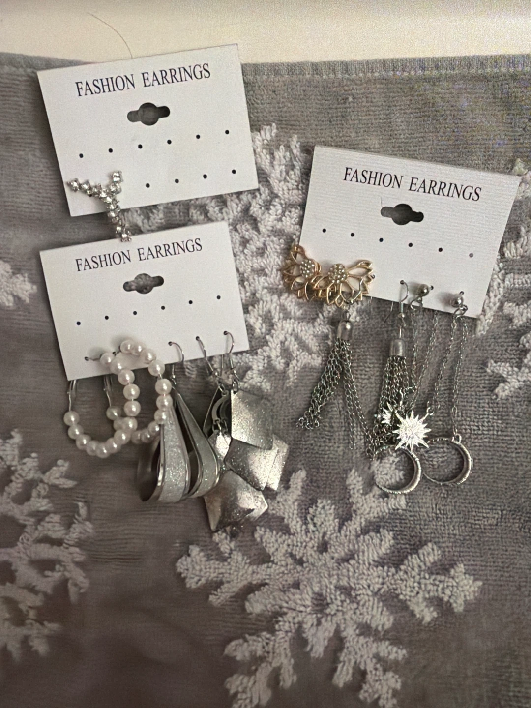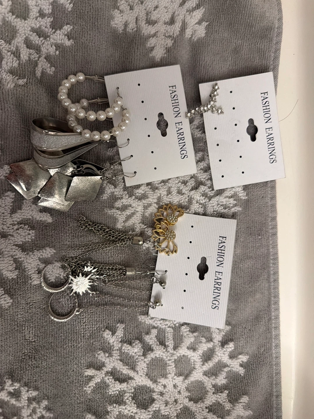 Selling a set of three different fashion earrings. They are in great condition and ready to accessorize your outfits!