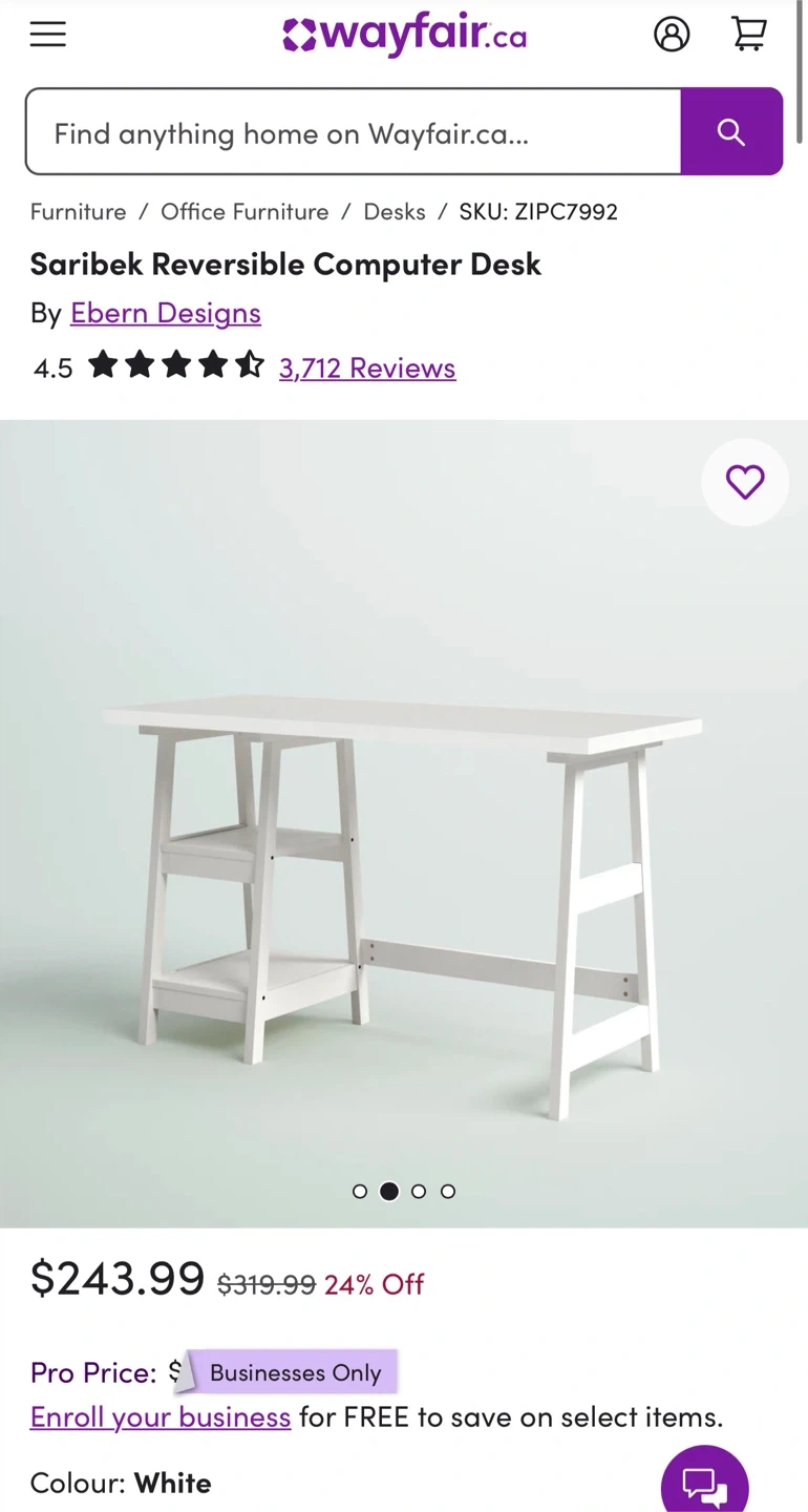 Selling a white computer desk by Ebern Designs! It's the Saribek Computer Desk model. This desk is in great shape and ready for a new workspace. Originally bought for $275 with taxes.
