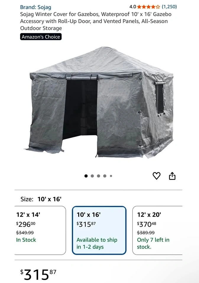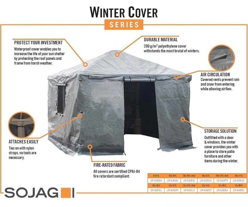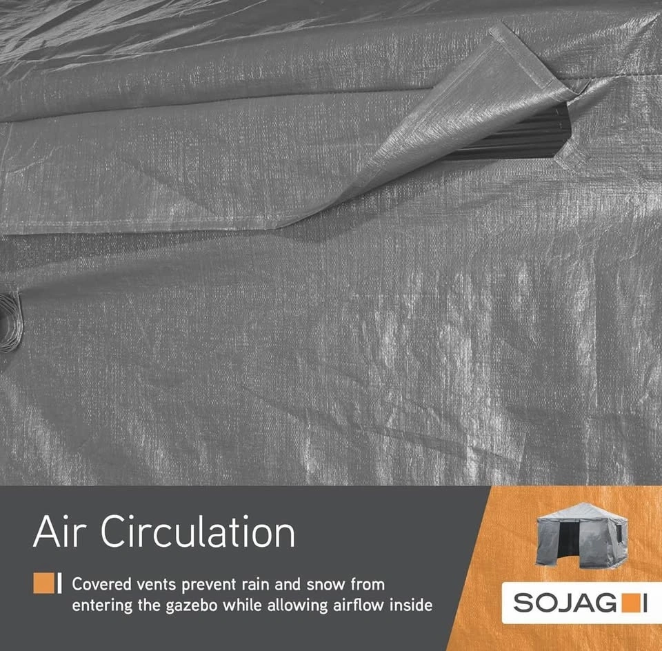 Sojag winter cover for 10’ x 16’ gazebos. Waterproof, vented panels, roll-up door. Original packaging not included.
