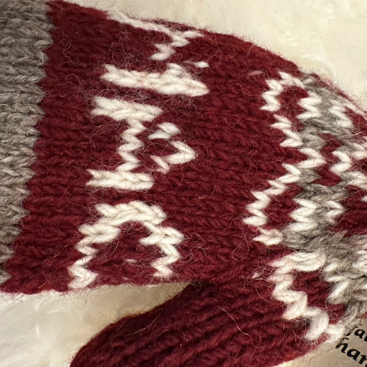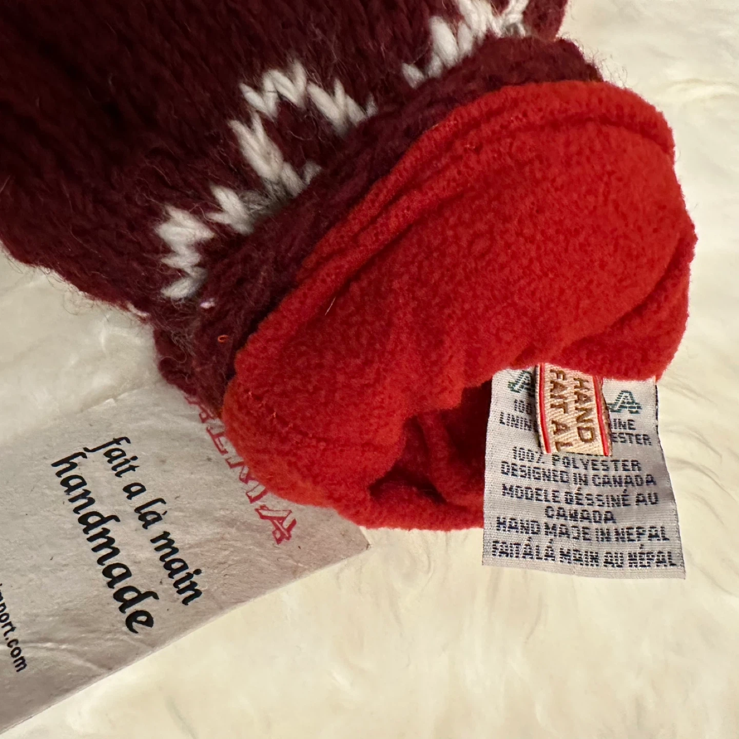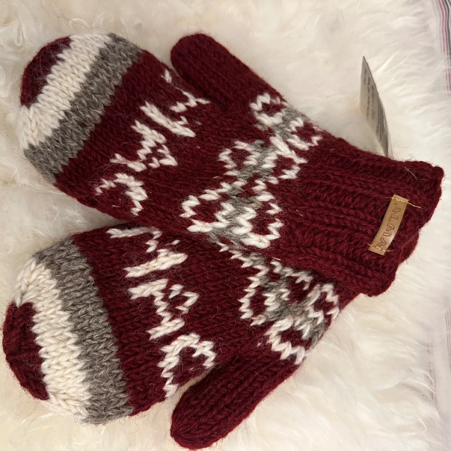 Keep your hands warm with these beautiful Alma handmade mittens! They feature a lovely burgundy and grey colour scheme with a unique pattern. Perfect for those chilly Canadian winters!