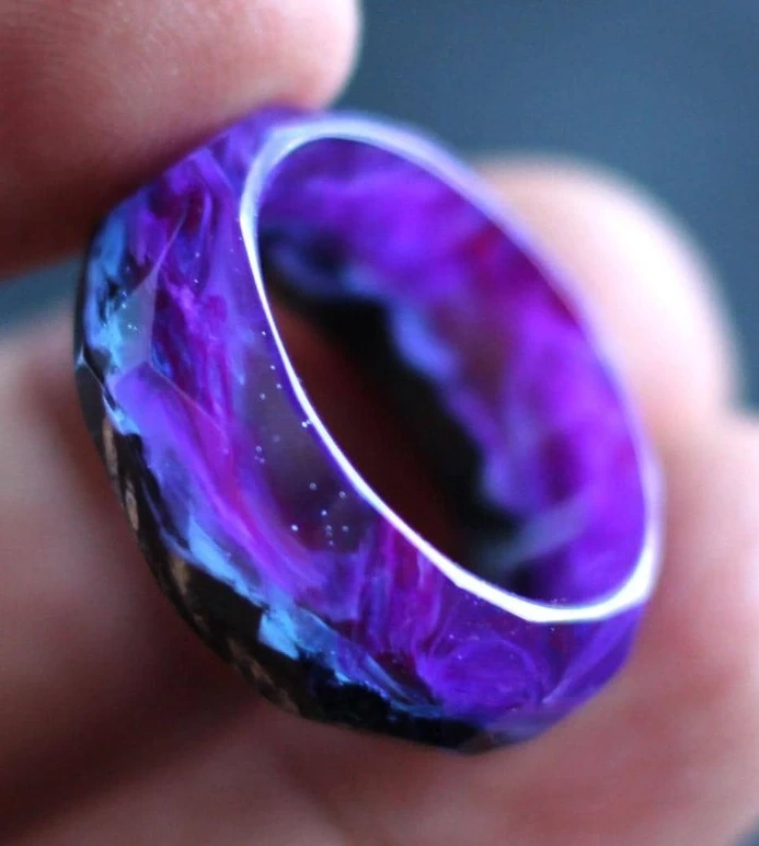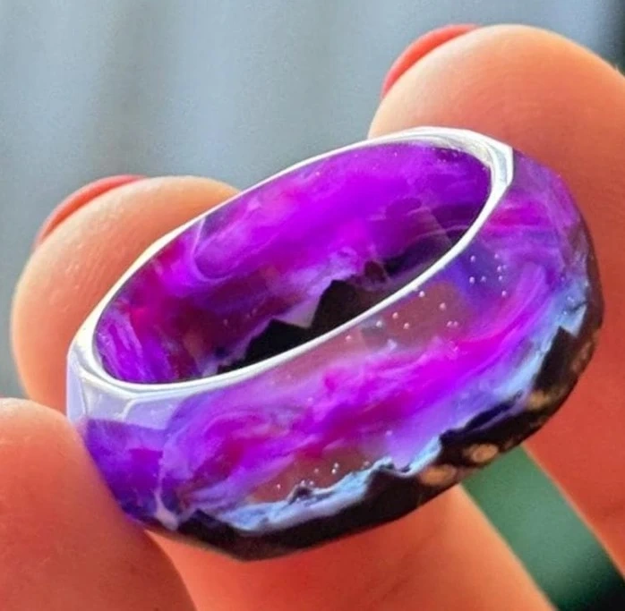 Selling a unique handmade resin ring! It features a beautiful purple galaxy-style design. It's in great condition and would make a lovely addition to any collection