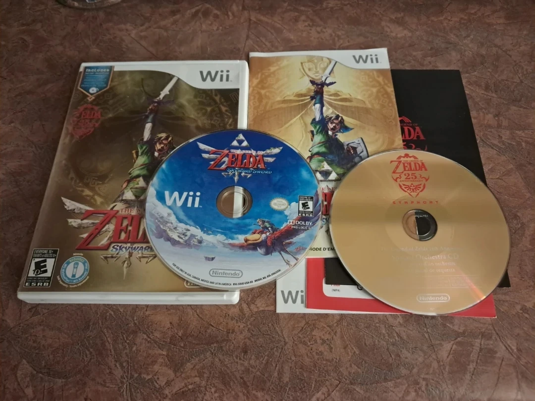 Selling The Legend of Zelda: Skyward Sword game for the Nintendo Wii! Includes the game disc and the 25th Anniversary Symphony Orchestra CD, plus the original case and manual. A must-have for any Zelda fan!