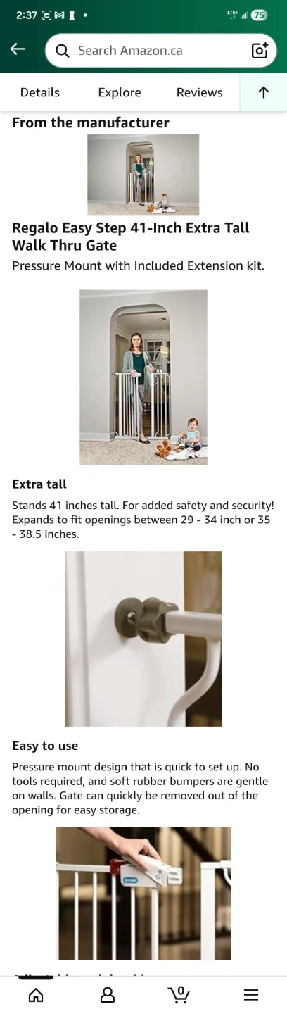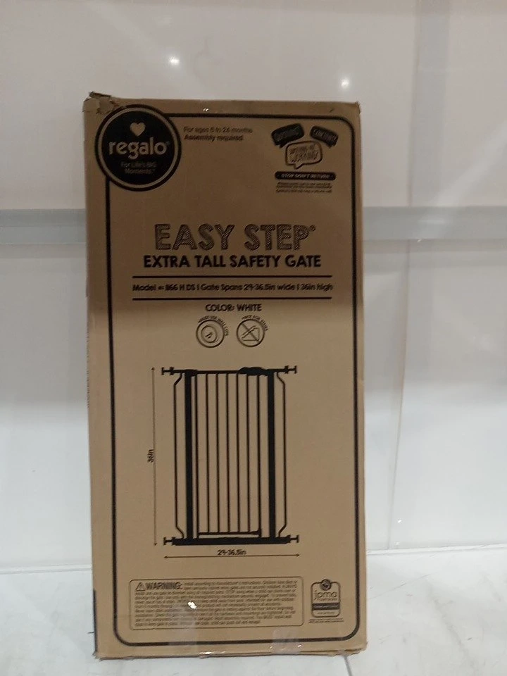 Keep your little ones safe with this Regalo Easy Step Extra Tall Safety Gate! This gate stands 36 inches tall and fits openings between 29-36.5 inches wide. It is in new condition, complete with the original box and has never been installed.