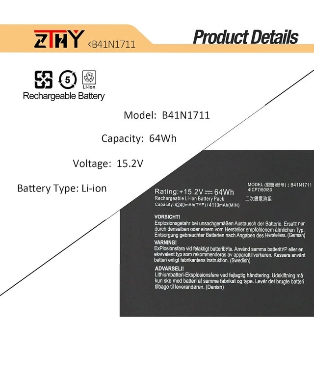 B41N1711 Laptop Battery
