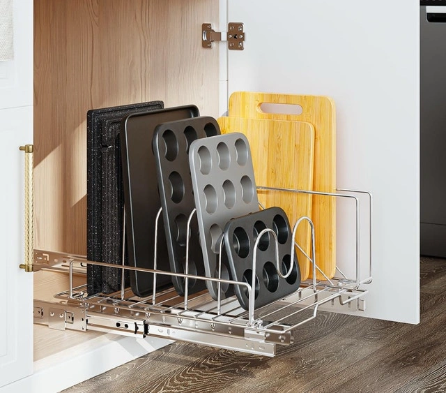 Slide Out Cutting Board, Bakeware, and Tray Organizer