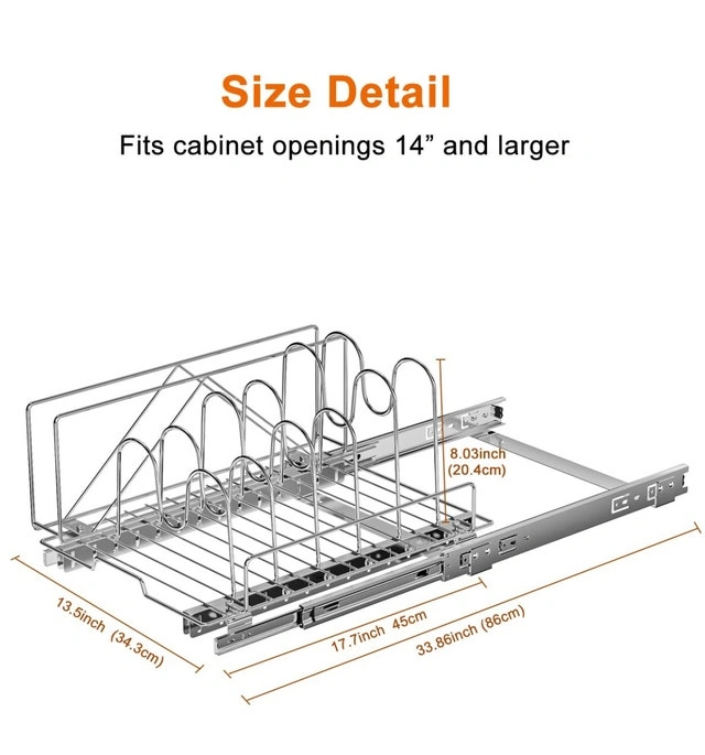 6 adjustable dividers to fit various cookware sizes.