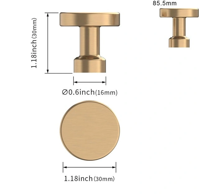 Made of zinc alloy for a sturdy and durable heavy-duty cabinet pull. Standard screw spacing for easy installation and replacement. Measurement: Diameter 1.2"(30mm); Base Diameter: 0.86"(22mm) Ideal for cabinet, closet, cupboard, drawer, dresser, door and wardrobe.