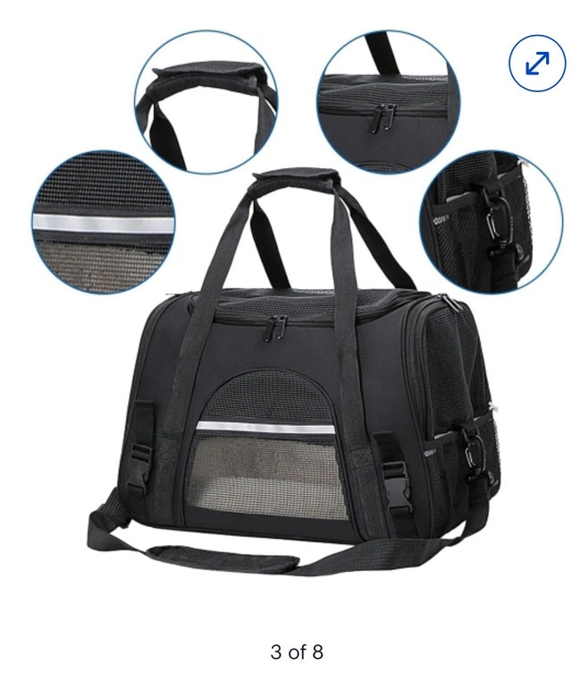 Four side mesh panels, refreshing and breathable, open vision. Two modes of carrying: handheld and single shoulder. Small zipper side pocket for easy storage. Half zipper opening side is convenient for you to reach pets during travel. Fully open zipper for easy access. Carrier is suitable for kittens, small cats, medium cats, small dogs and other small animal.