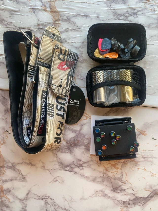 Guitar Accessories Bundle: Picks, Slides, Strap, Chordmate