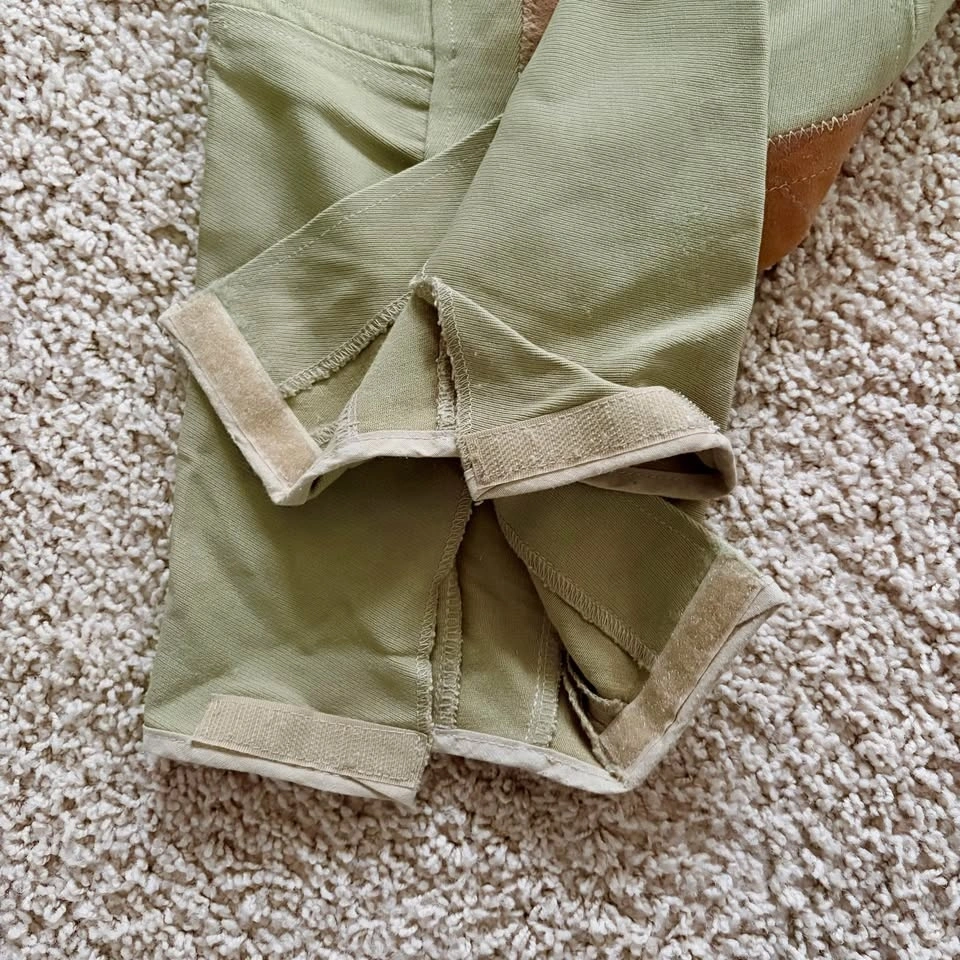 Features Classic fit, traditional style and amazing quality, side zipper and two front pockets, goatskin knee patches and velcro ankle closure. Made from imported 2 way stretch fabric. These pants are in good pre-loved condition, with some wash wear and discolouration on the knee patches as shown. **This style fits a bit shorter, please check measurements**