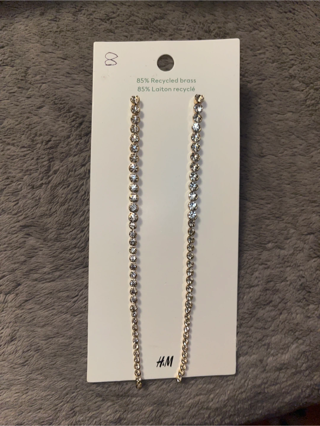 These H&M dangle earrings are brand new and still on the original card! They feature 85% recycled brass and 85% laiton recycle. The original price was $14.99 CAD