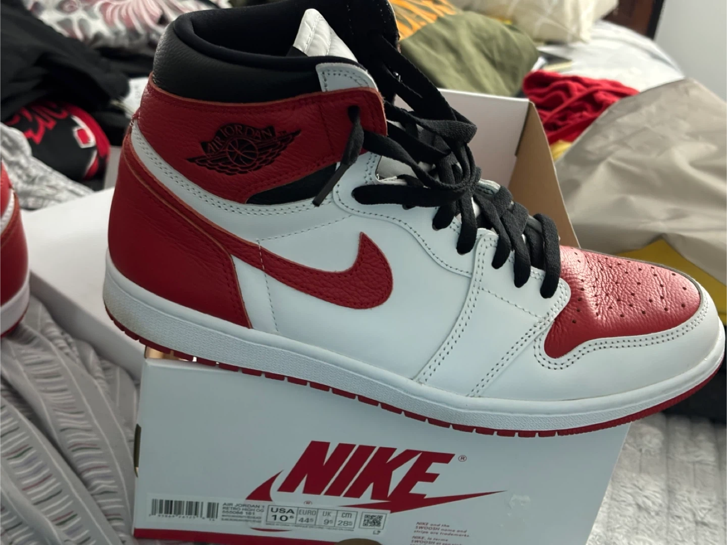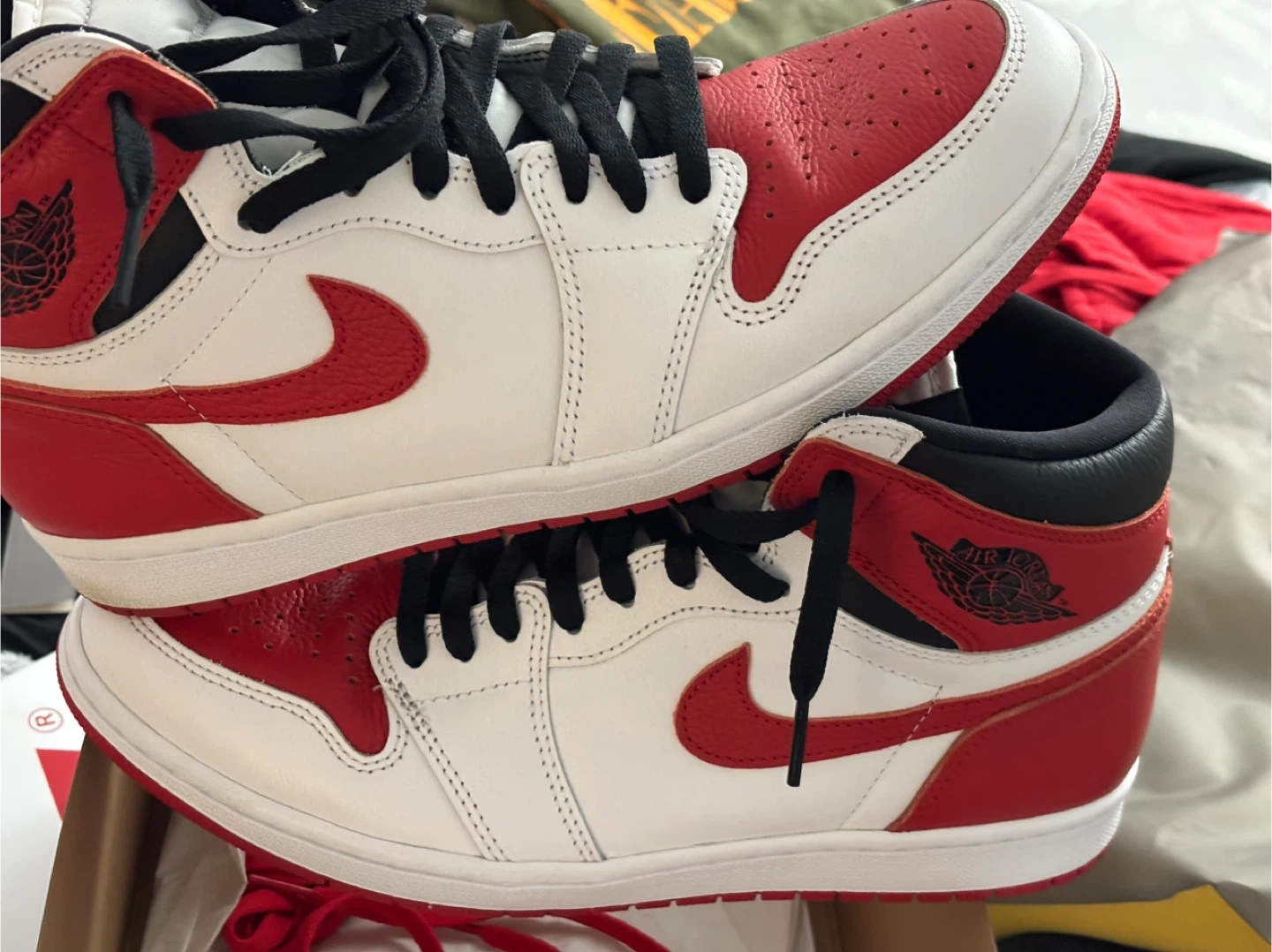 Selling a pair of litely used Air Jordan 1 Retro High OG in the classic Chicago colorway. These are size 10.5 US. They come with the original box.