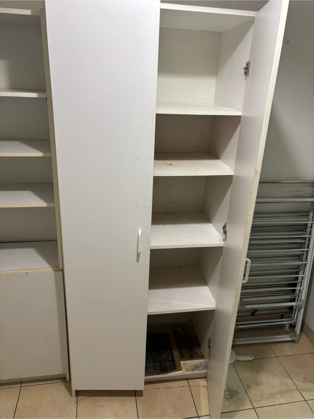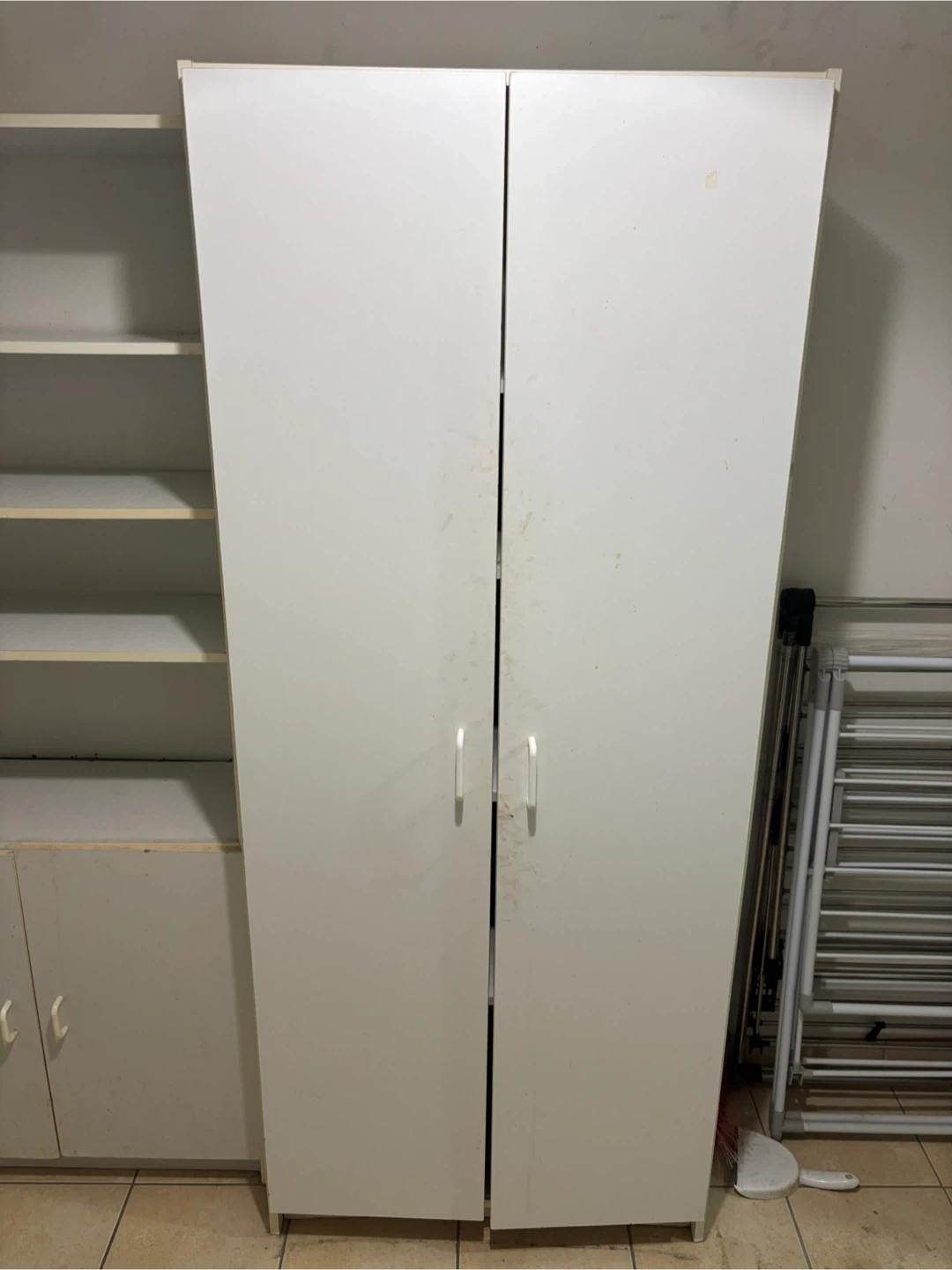 Selling a white wardrobe cabinet! It has some shelves inside for storage. It's in good condition and ready to help organize your space