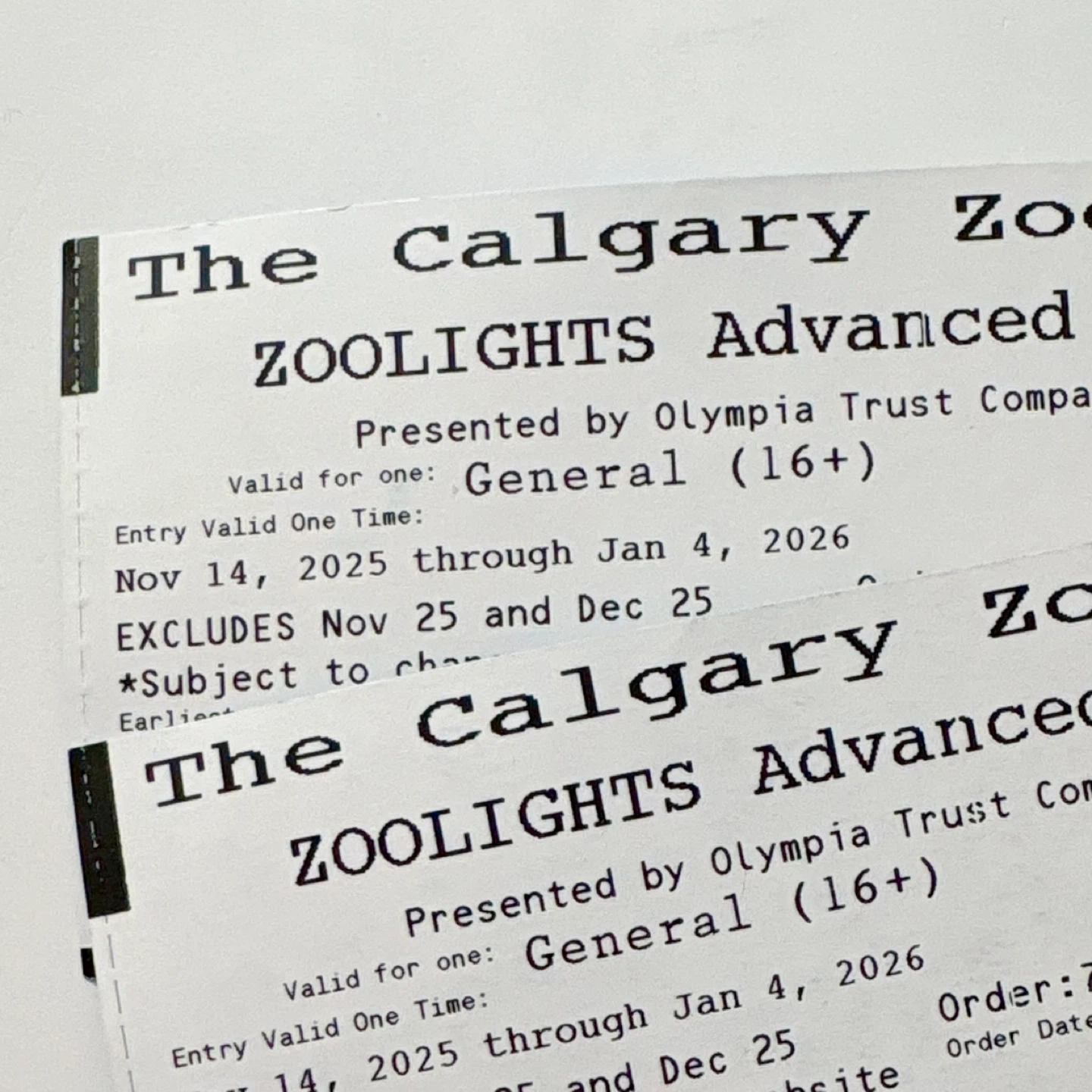 I have 2 tickets for the Calgary Zoo ZOOLIGHTS Advanced event for sale
