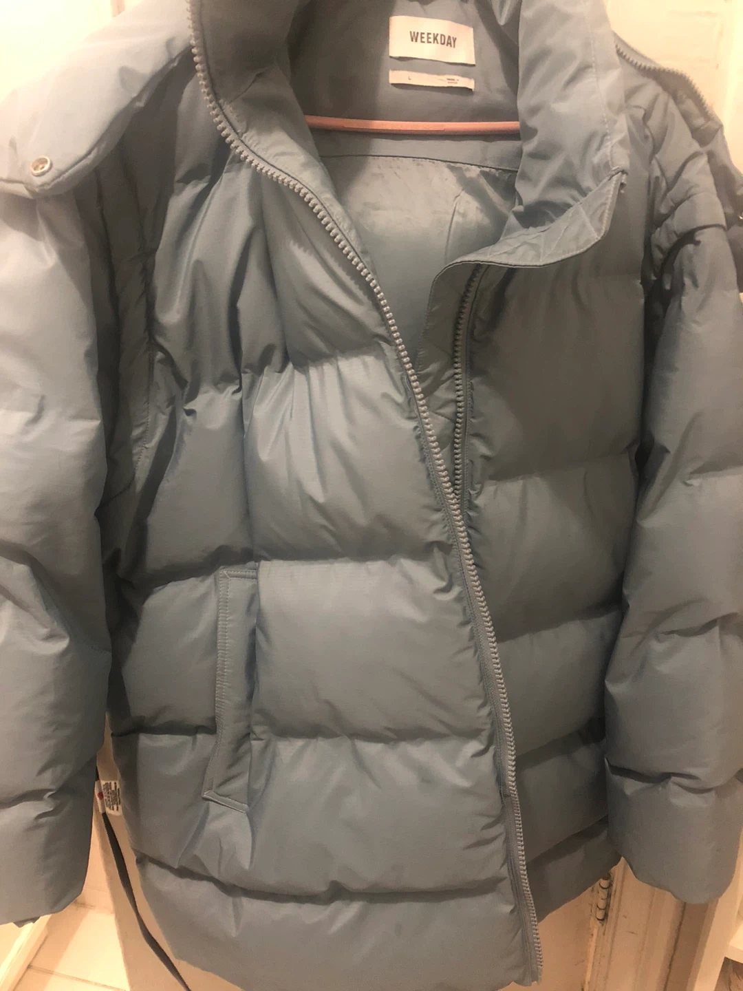 Selling an “oversized” light blue puffer jacket from Weekday! It's super cozy and perfect for chilly weather. The jacket is in great condition and ready for a new owner. Detachable sleeves and hood.