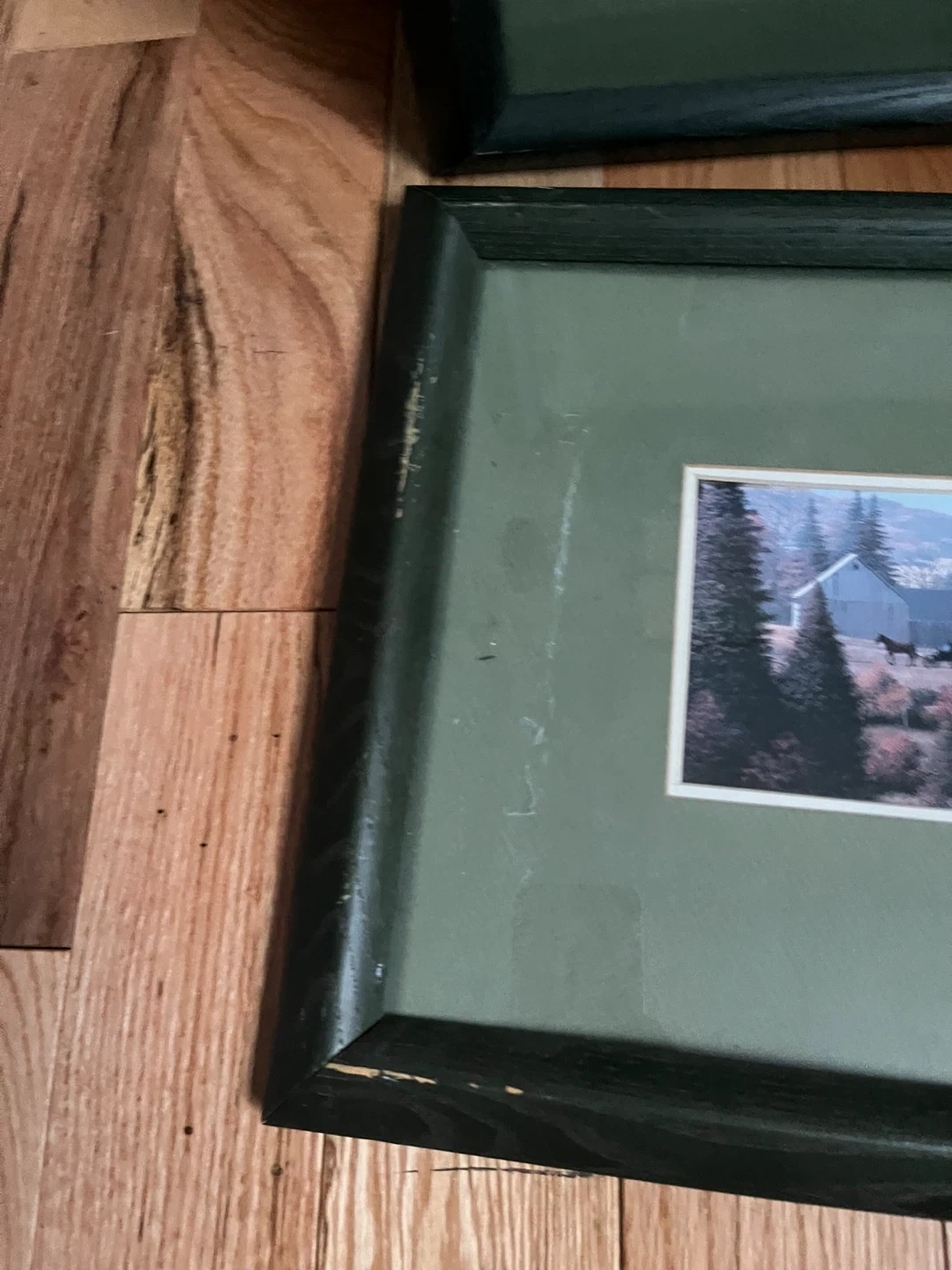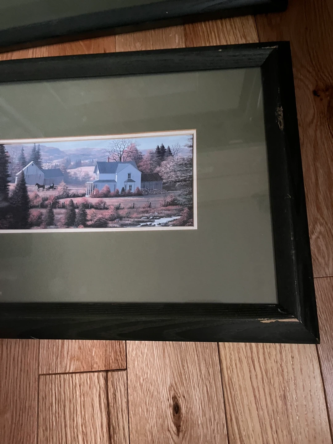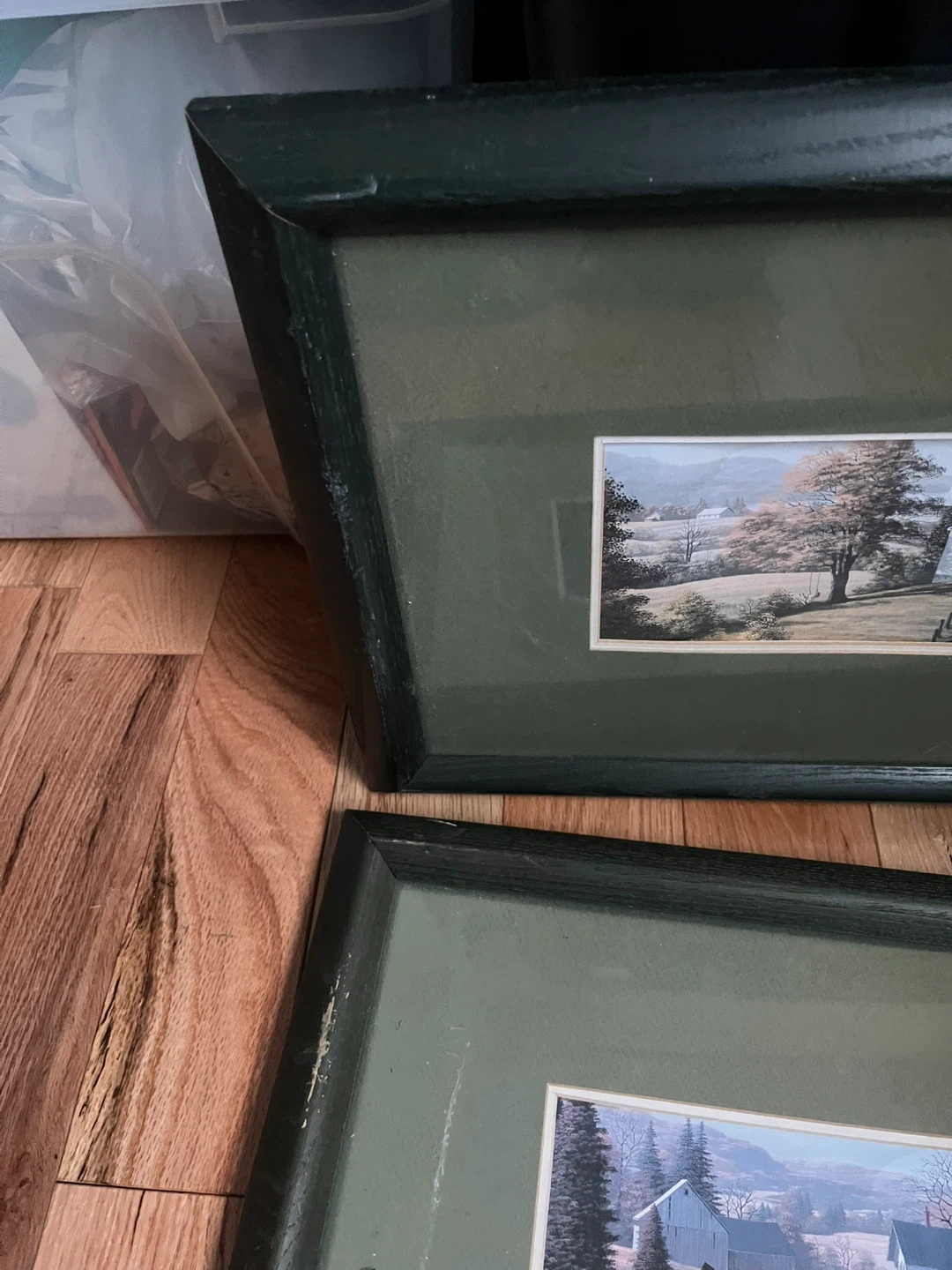 Selling a set of two framed landscape prints. The frames are a dark wood colour and show some signs of wear, need to remove the pictures.