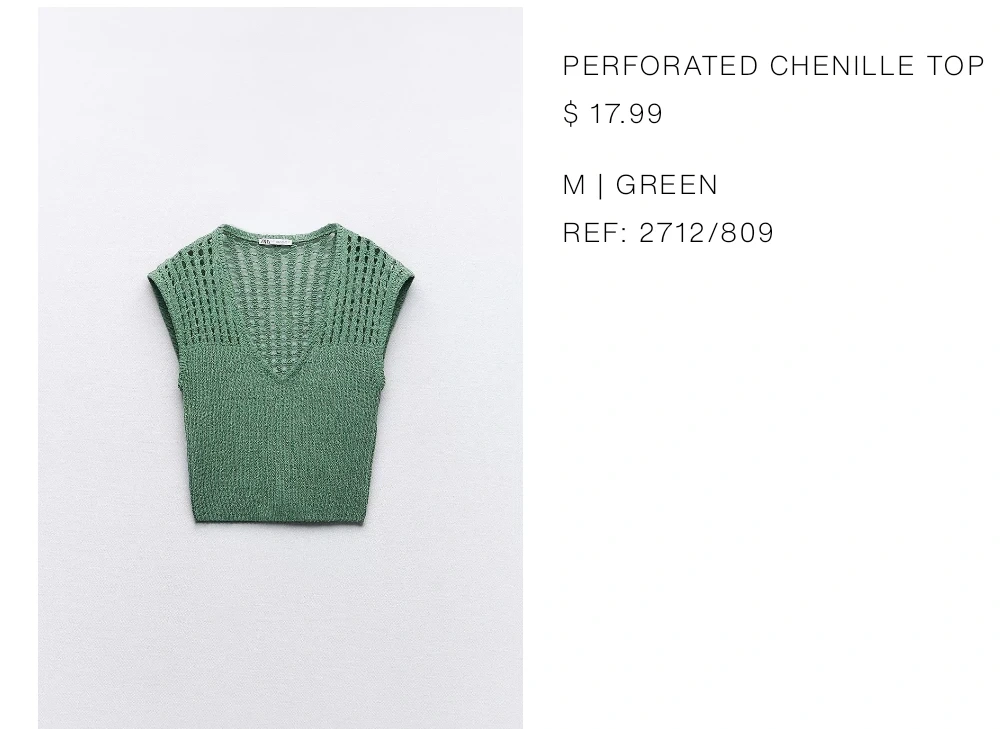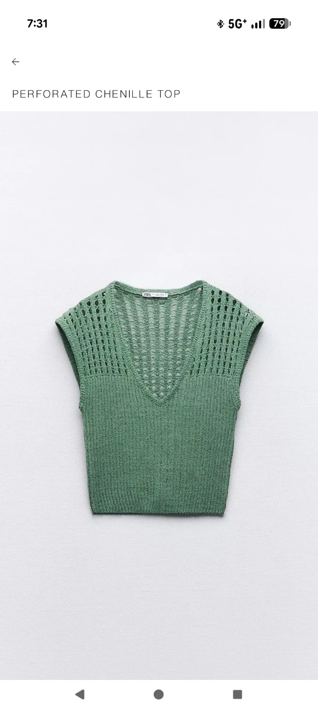 Selling a Zara Perforated Chenille Top in size medium. It's a lovely green colour and originally cost $17.99.