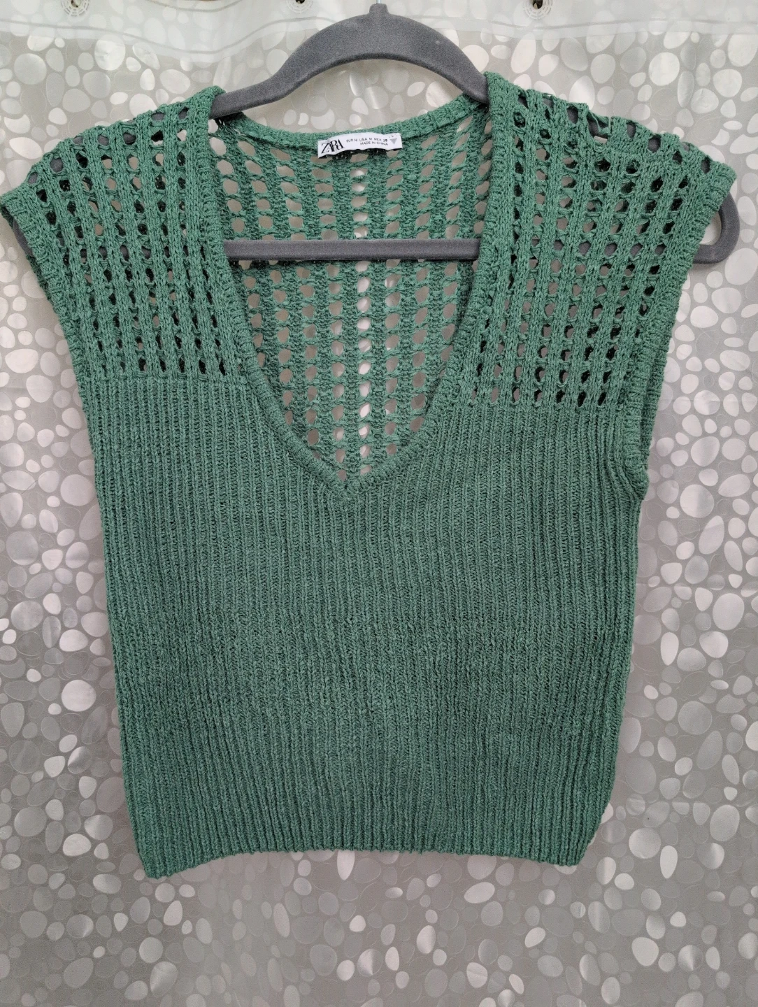 Zara Perforated Chenille Top - Size M - Green
